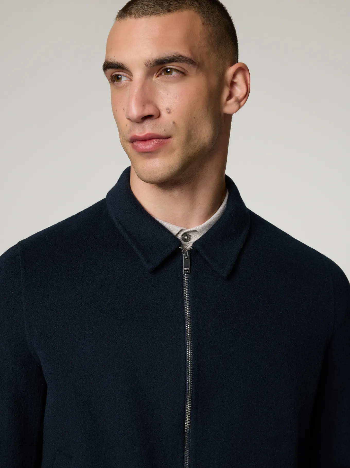 Unser Model misst 187 cm und trägt Grösse 48.