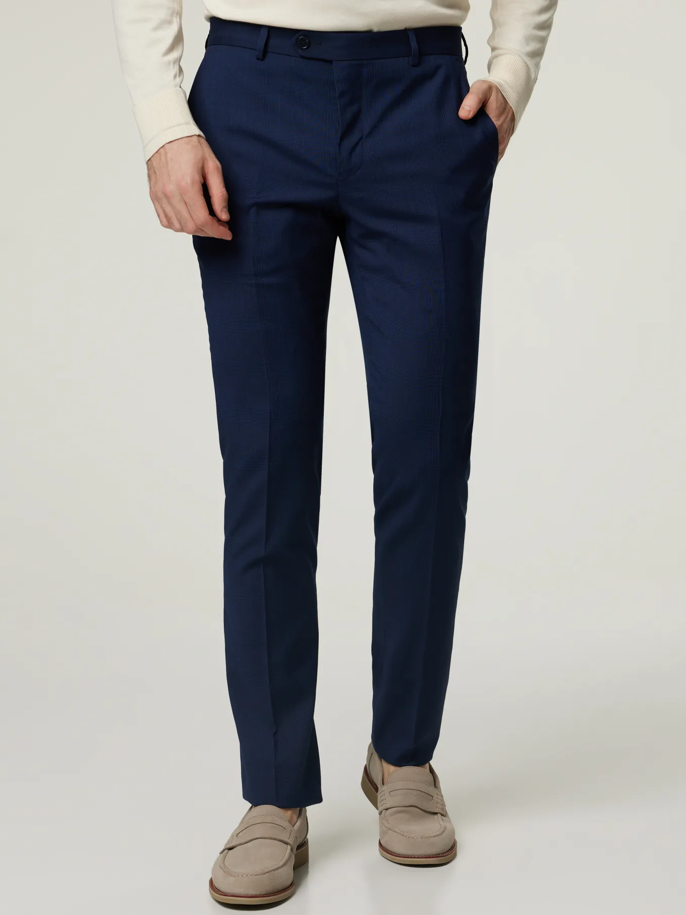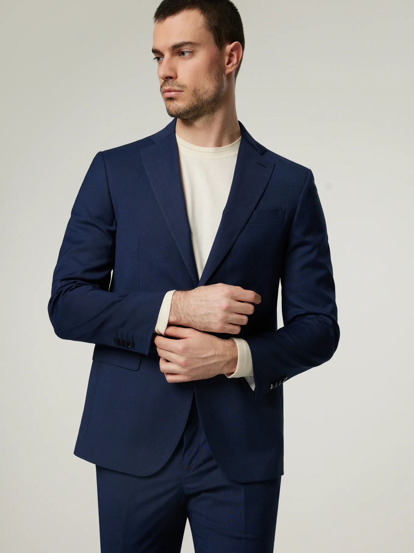 Unser Model misst 187 cm und trägt Grösse 48.