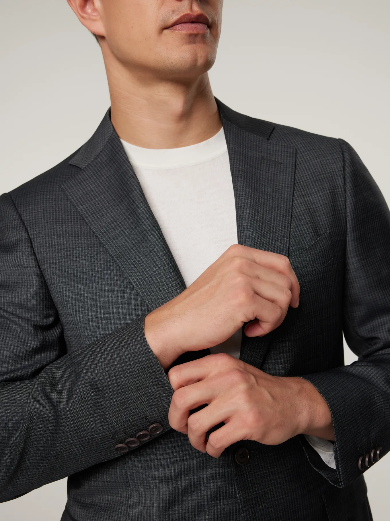 Unser Model misst 187 cm und trägt Grösse 50.