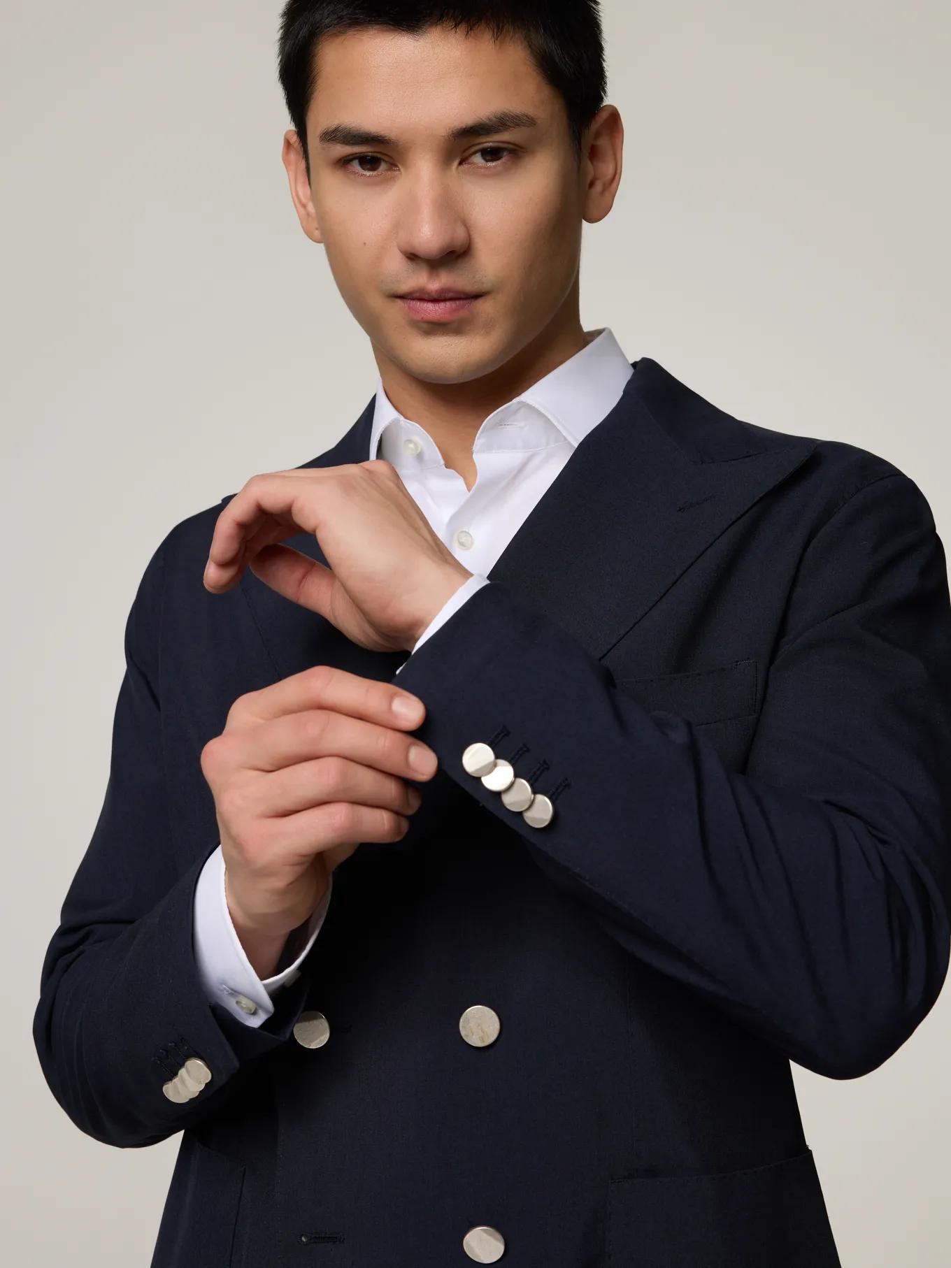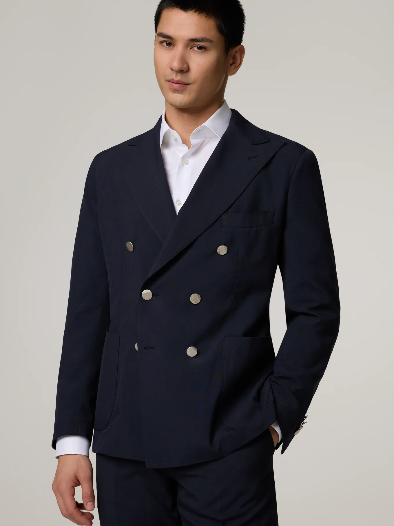 Unser Model misst 185 cm und trägt Grösse 50.