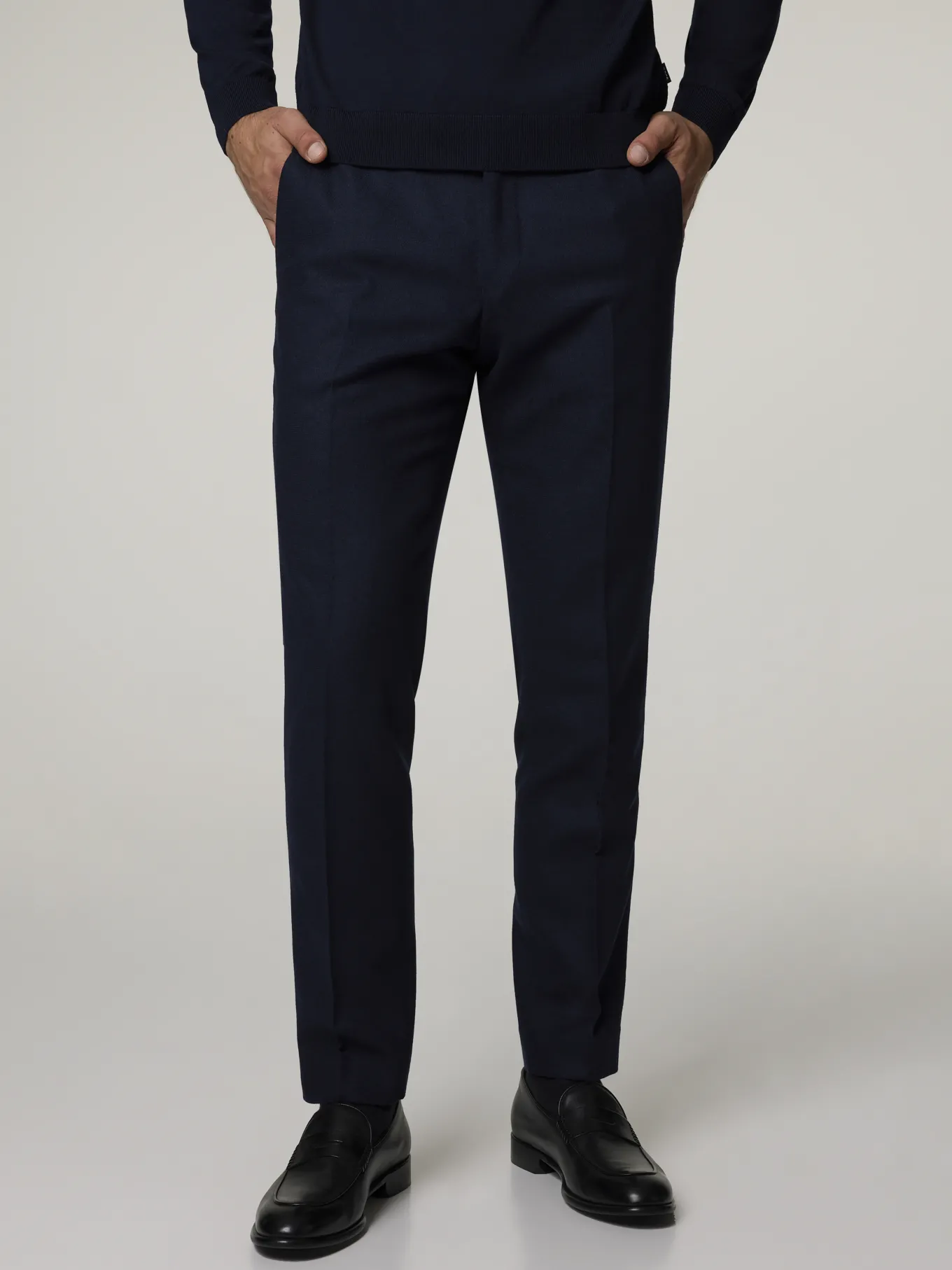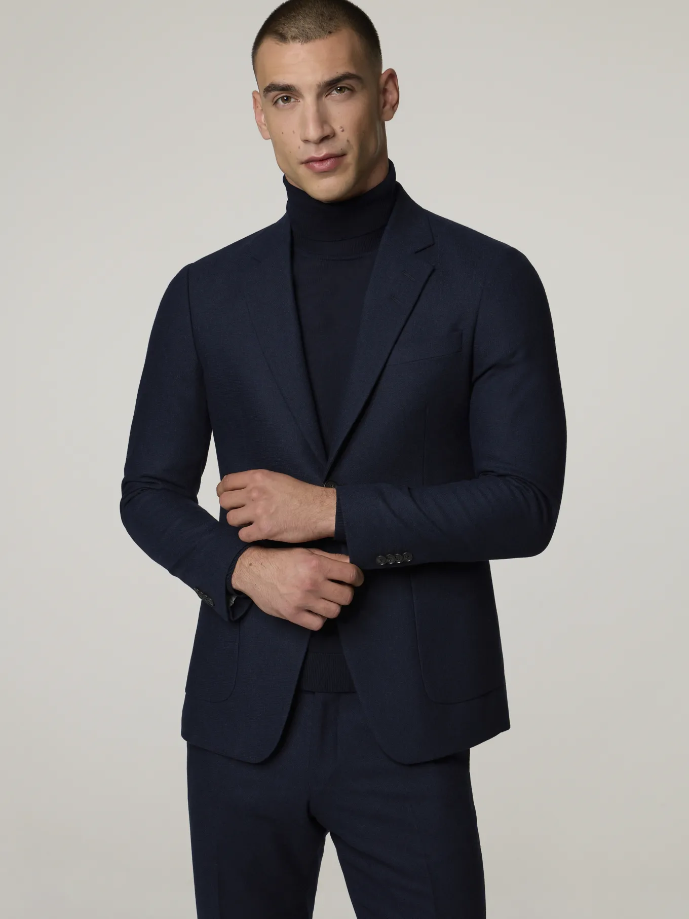 Unser Model misst 187 cm und trägt Grösse 48.