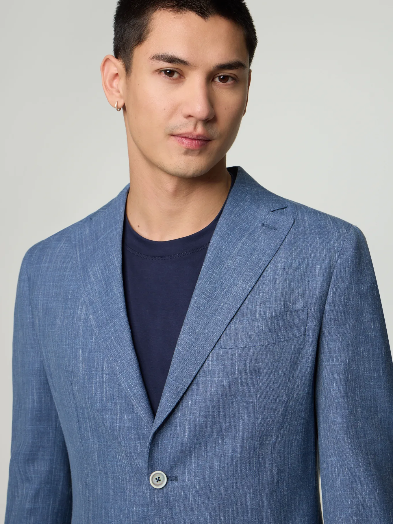 Unser Model misst 185 cm und trägt Grösse 48.