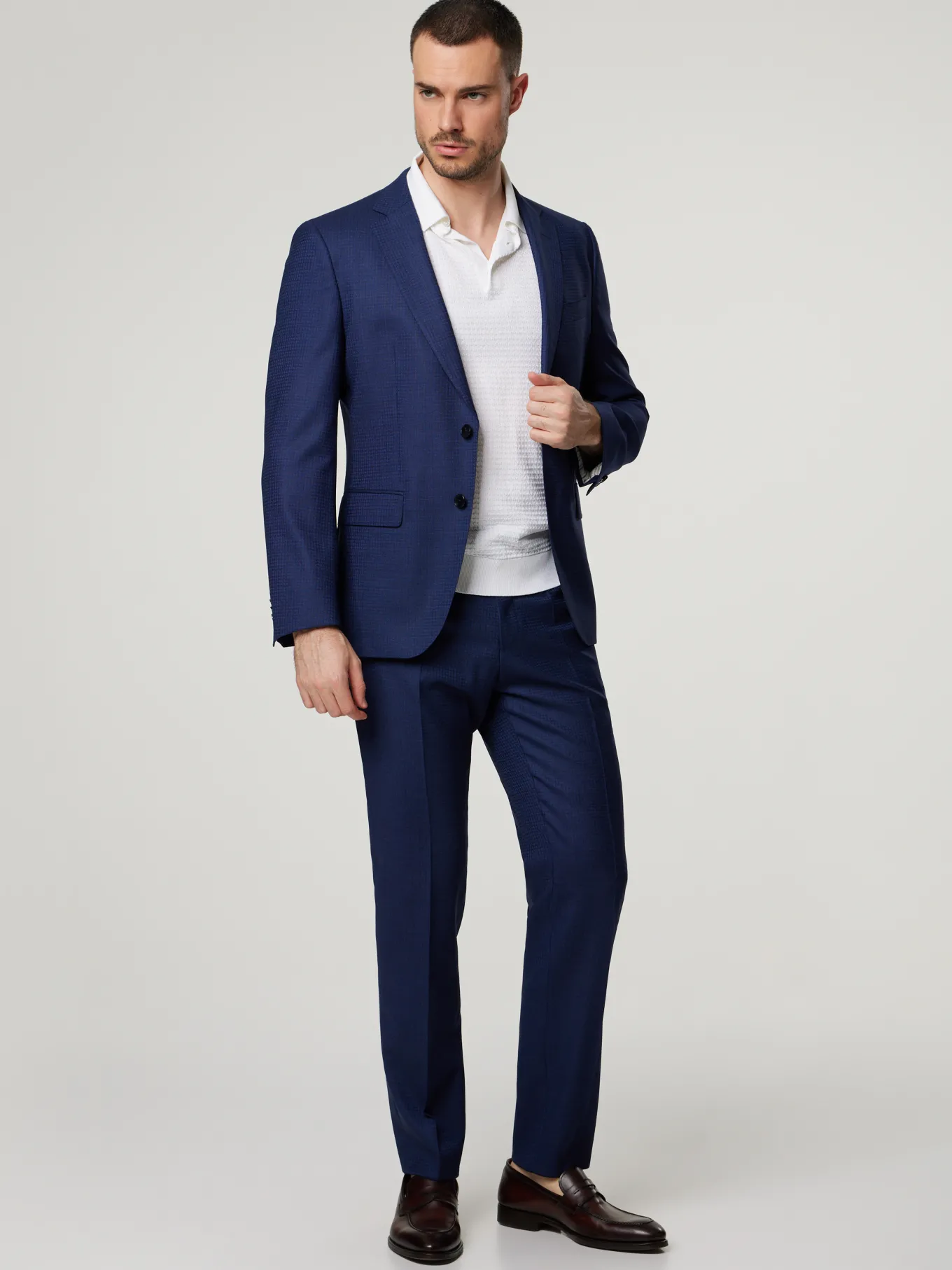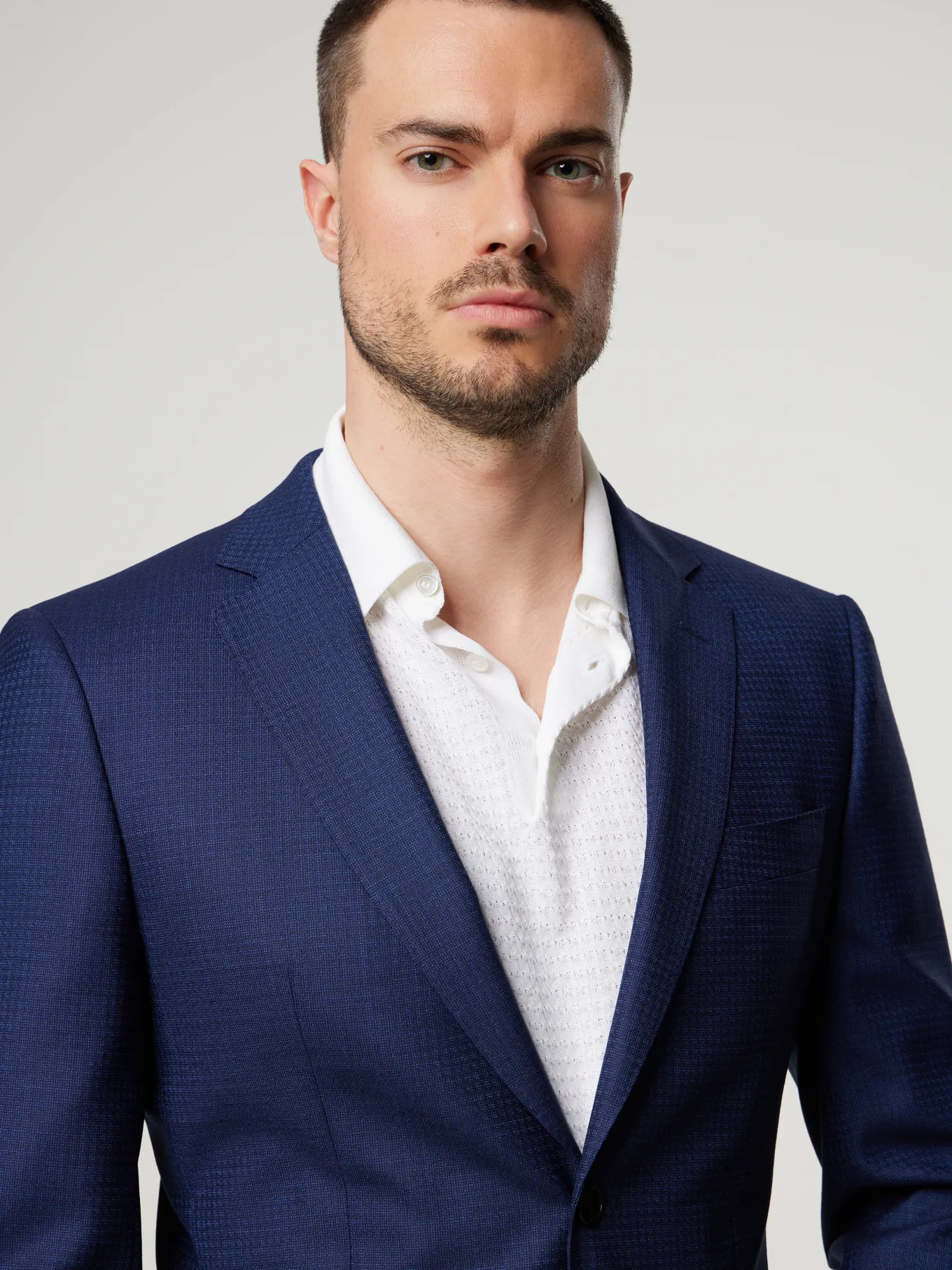 Unser Model misst 187 cm und trägt Grösse 48.