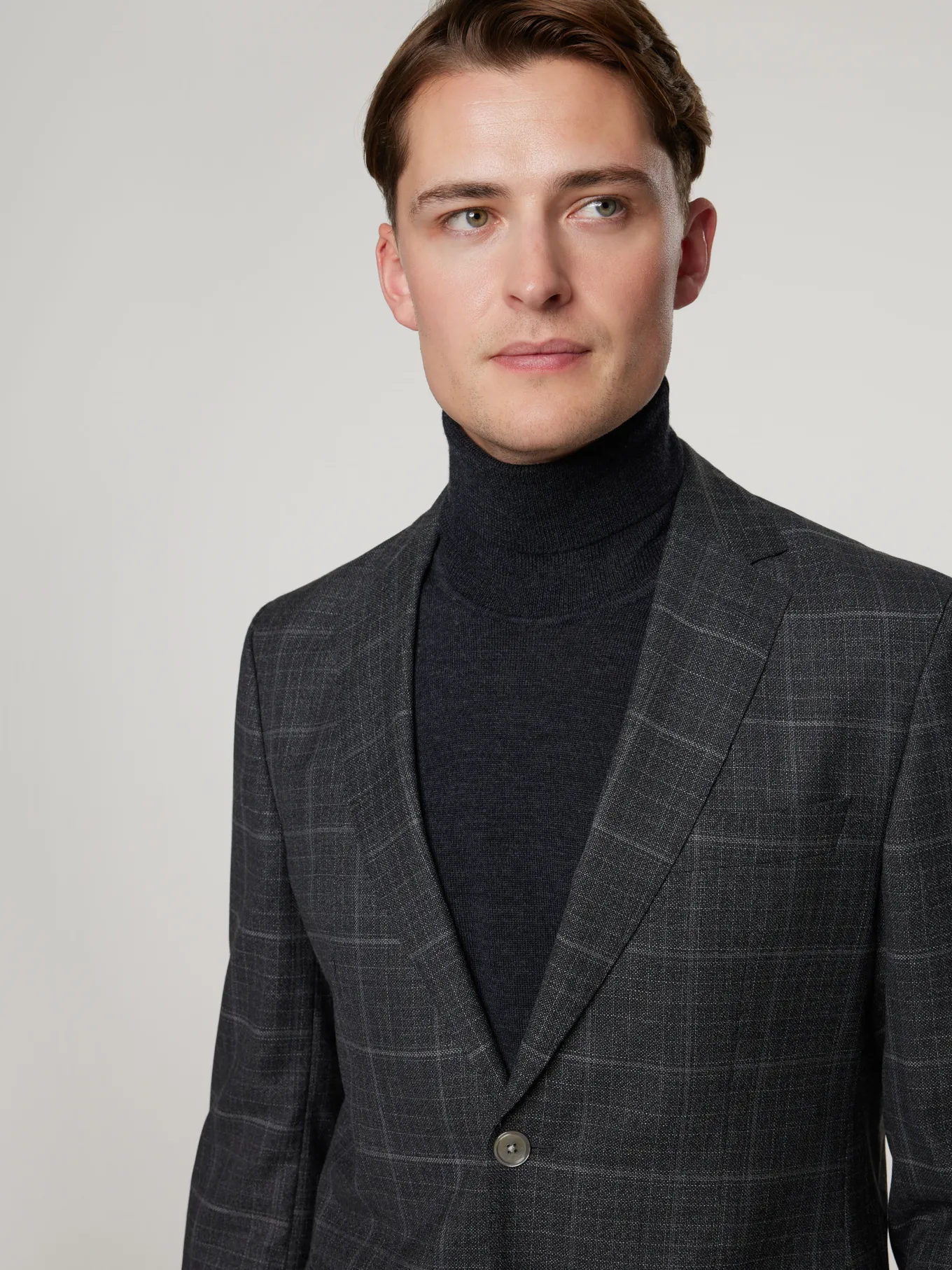Unser Model misst 187 cm und trägt Grösse 48.