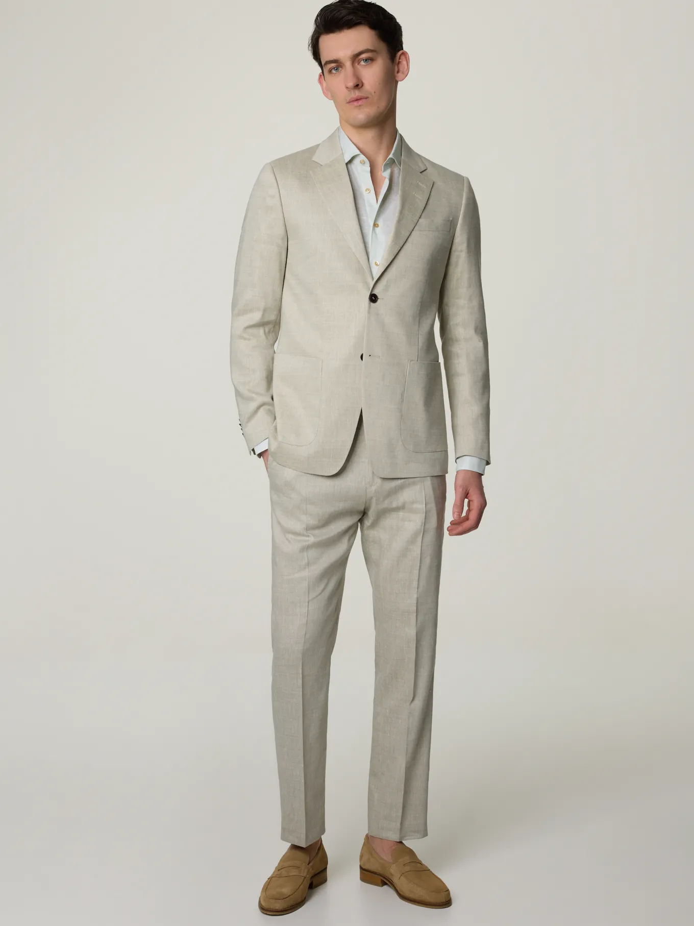 Unser Model misst 190 cm und trägt Grösse 48.