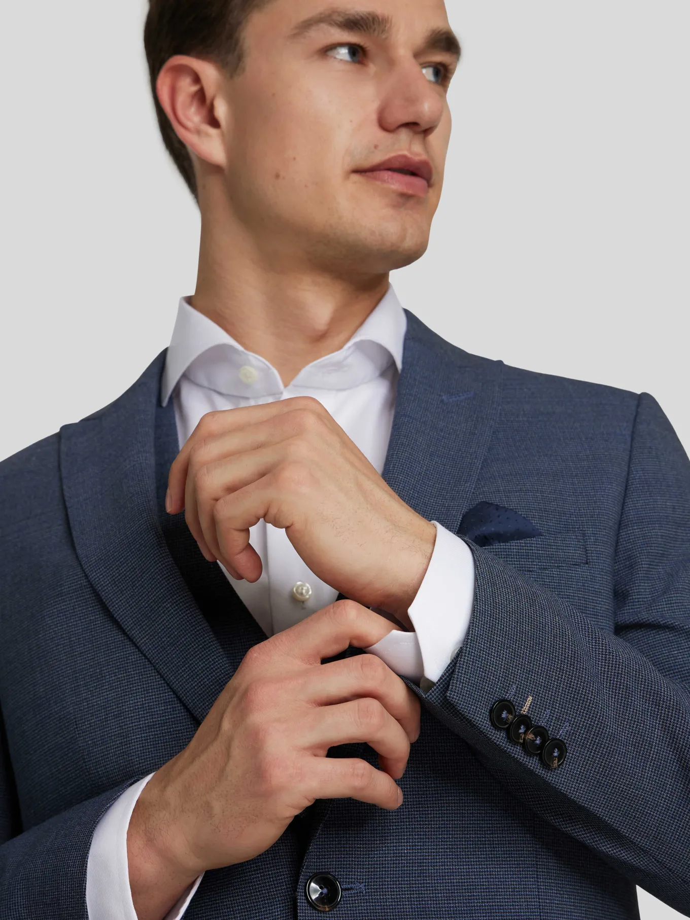 Unser Model misst 187 cm und trägt Grösse 48.