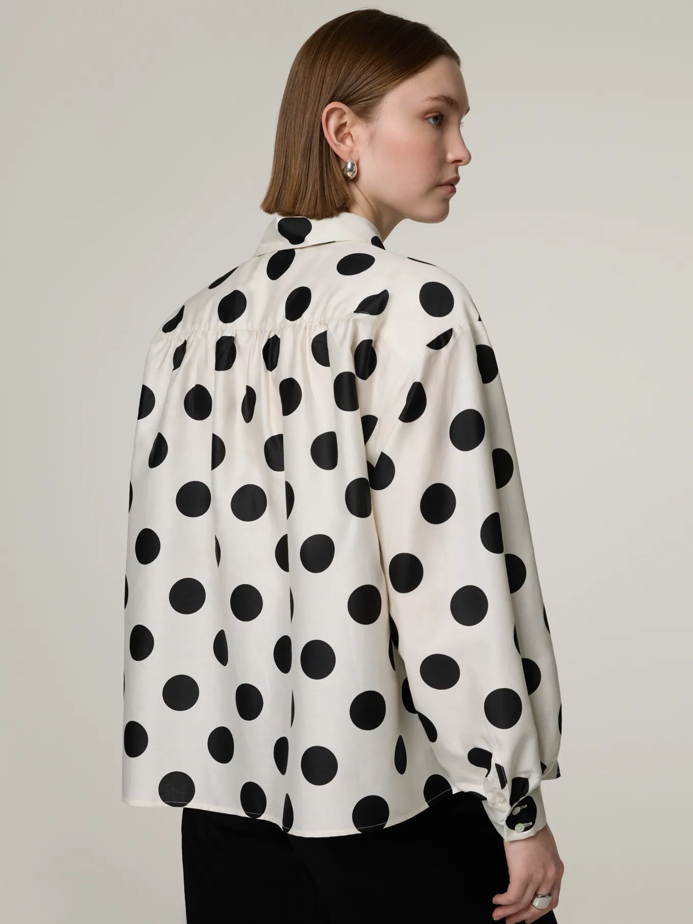 Unser Model misst 174 cm und trägt Grösse 36.