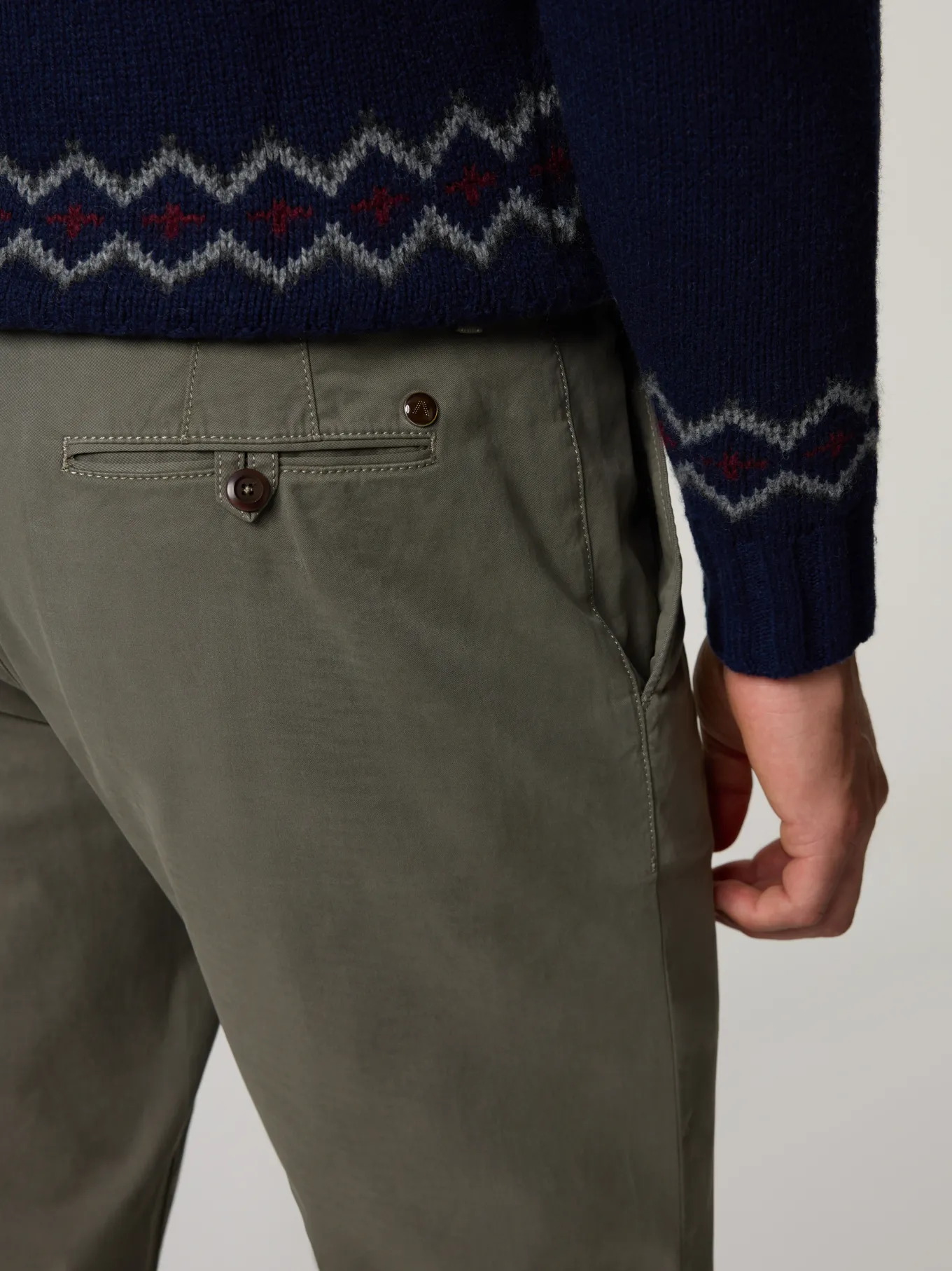 Unser Model misst 187 cm und trägt Grösse 33/32.