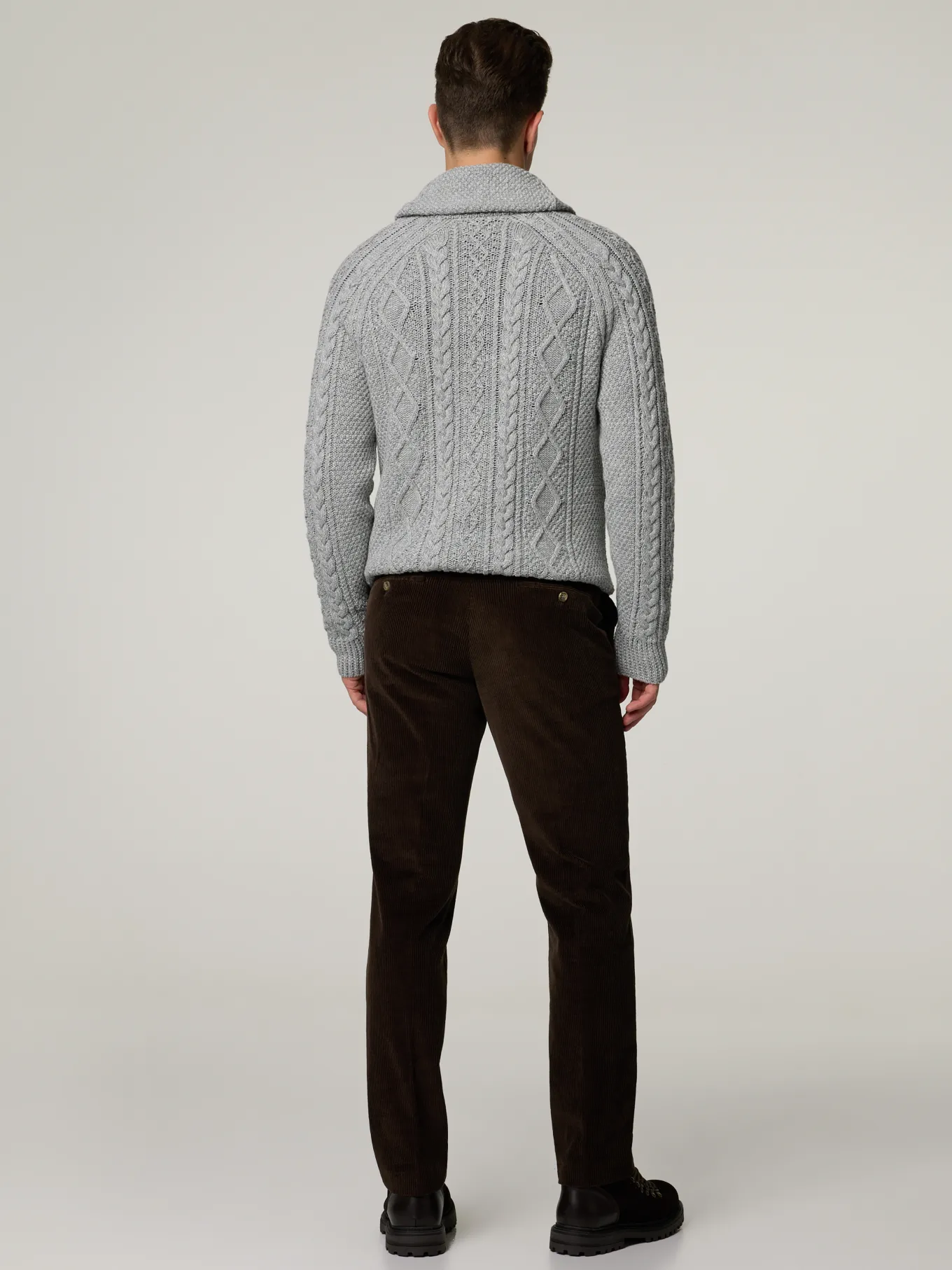Unser Model misst 187 cm und trägt Grösse 48.