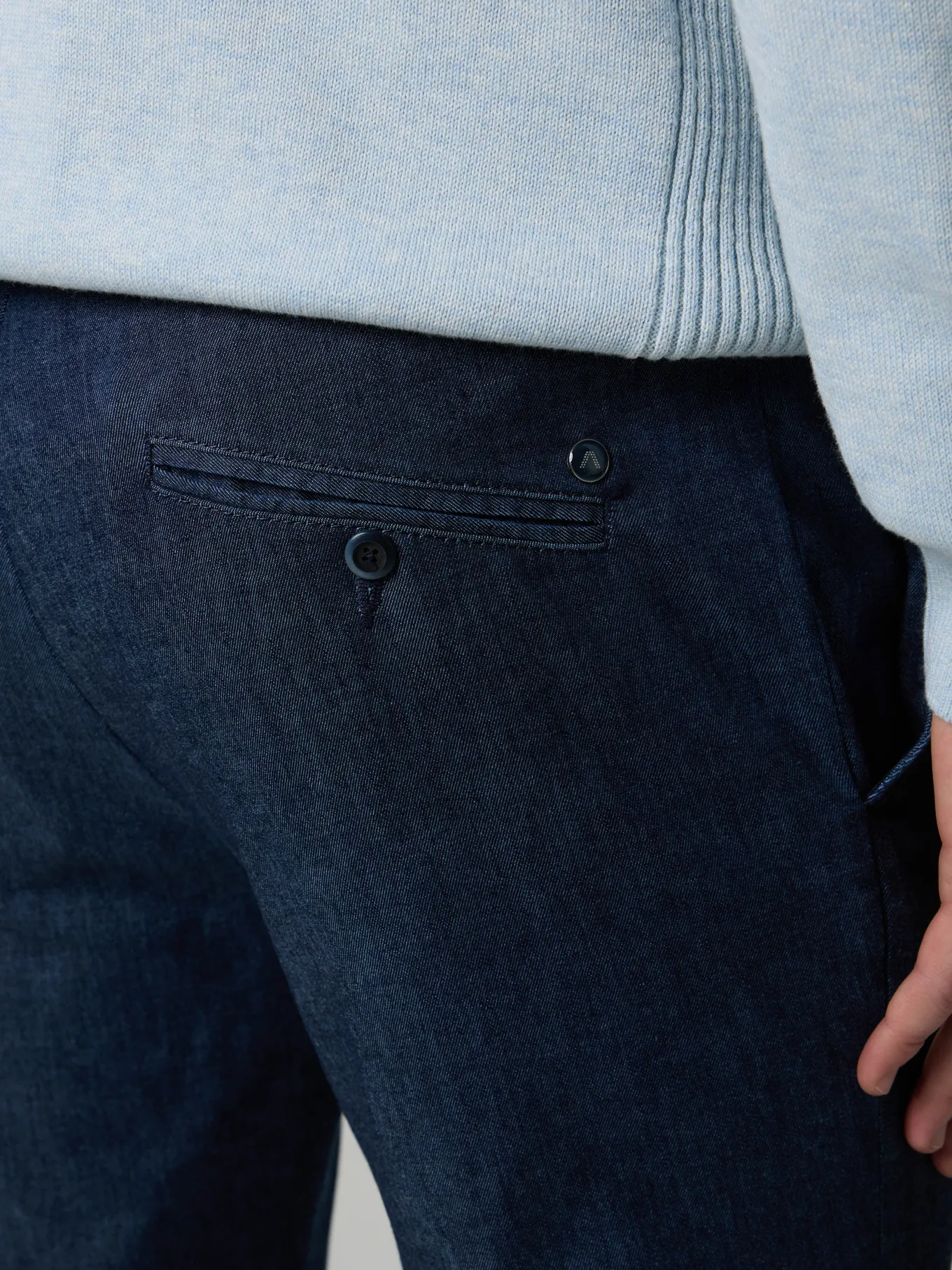 Unser Model misst 186 cm und trägt Grösse 33.