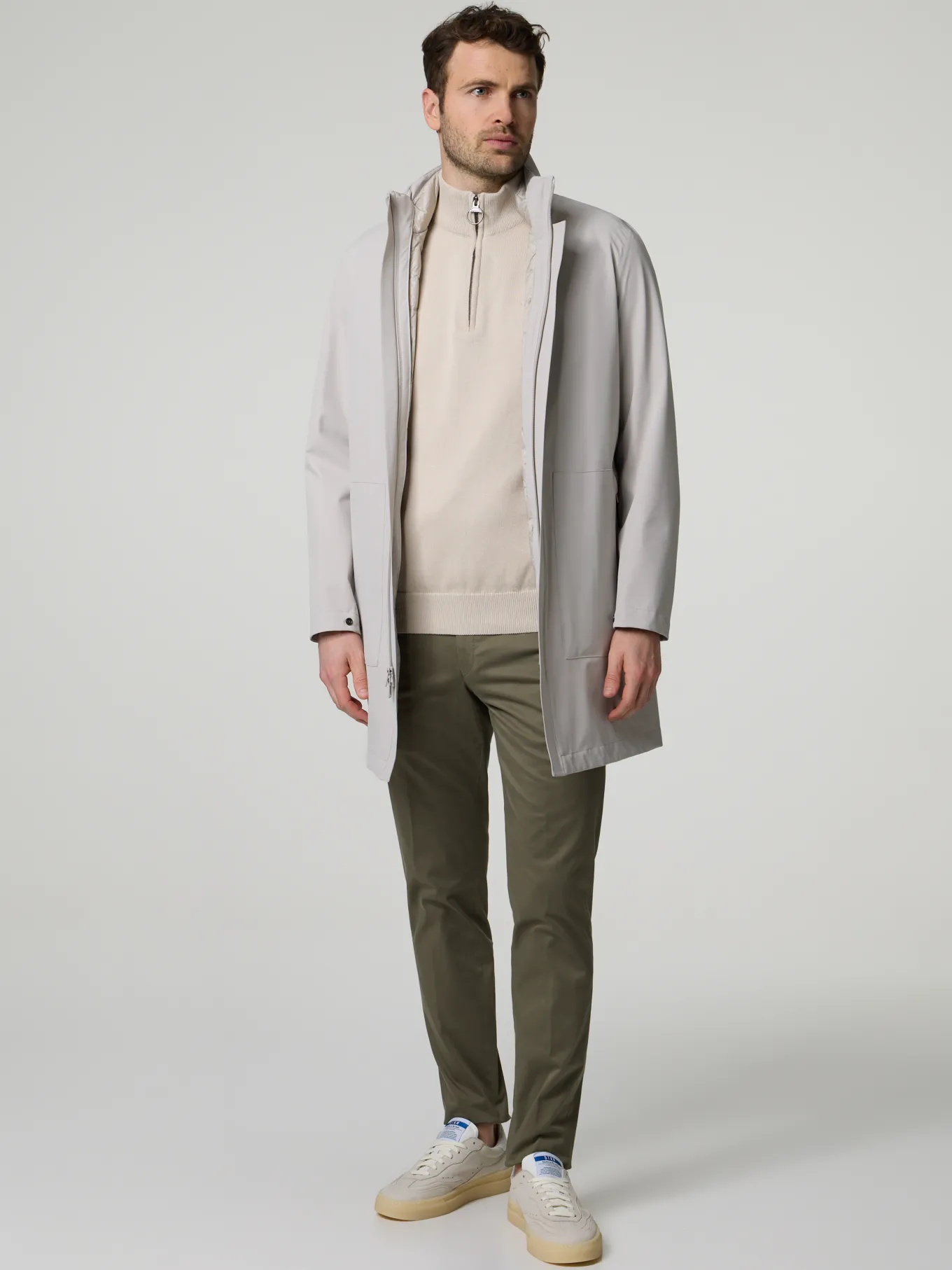 Unser Model misst 186 cm und trägt Grösse 48.