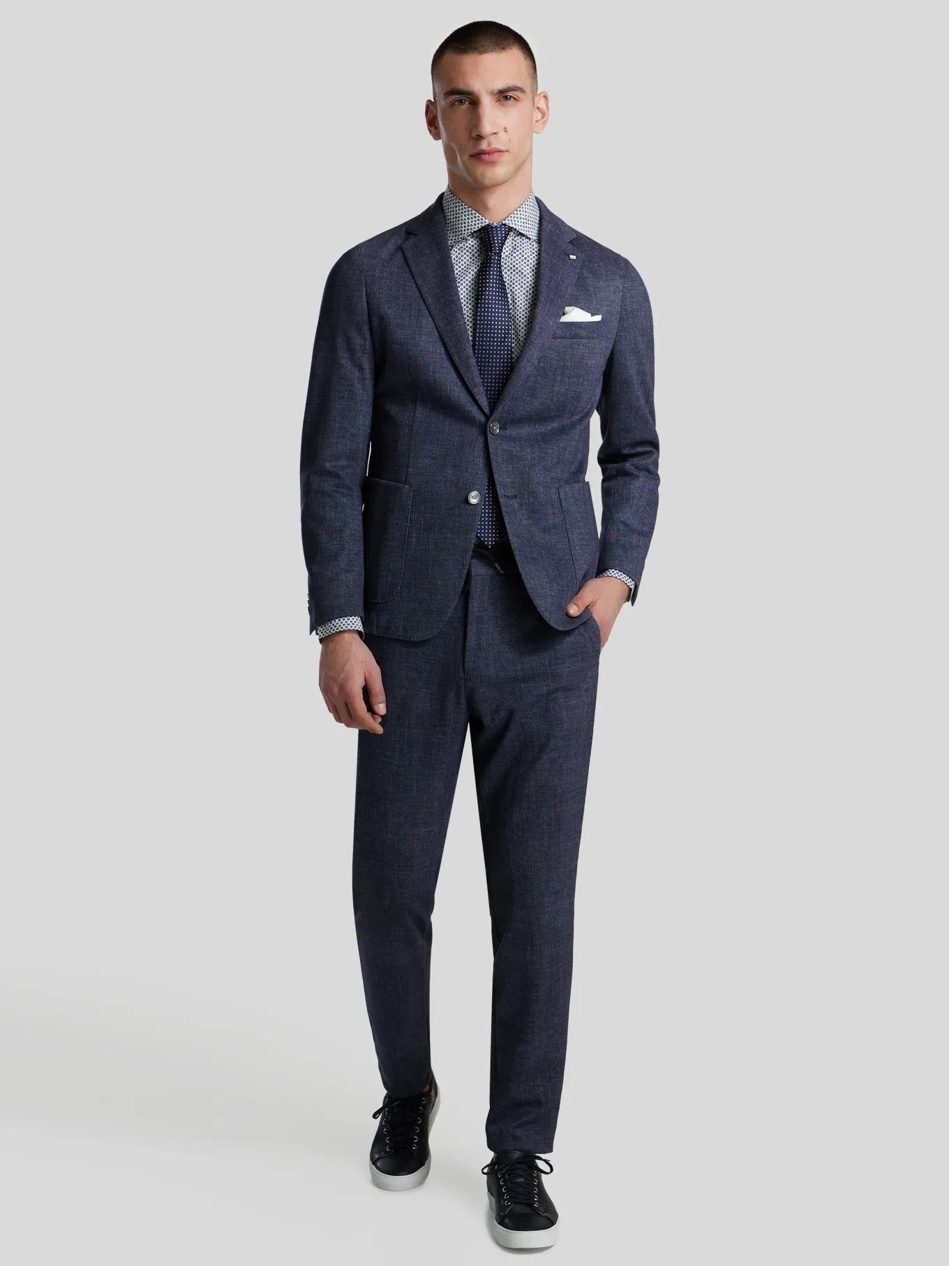 Unser Model misst 187 cm und trägt Grösse 41.