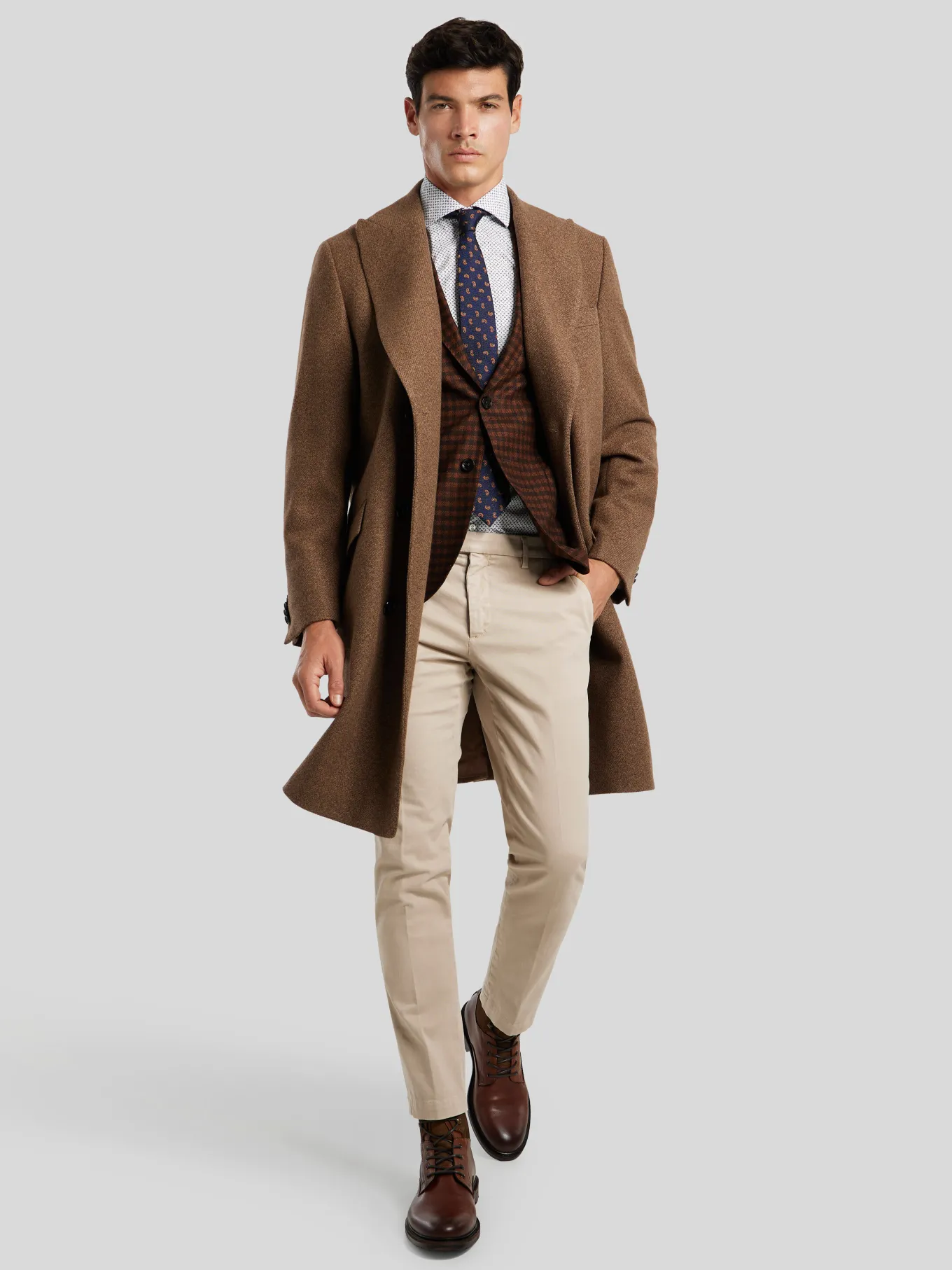 Unser Model misst 187 cm und trägt Grösse 40.