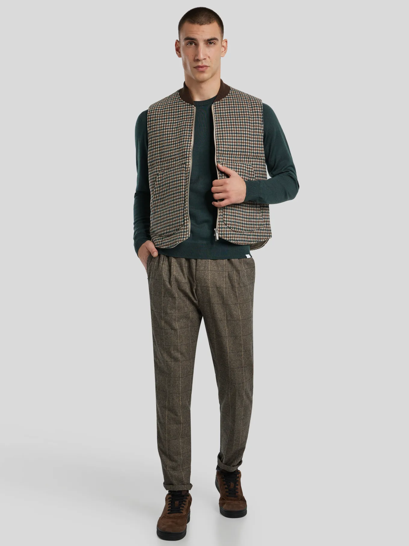 Unser Model misst 187 cm und trägt Grösse 50.