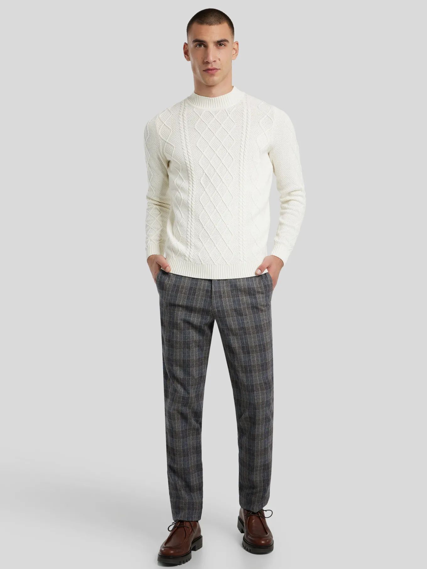 Unser Model misst 187 cm und trägt Grösse 48.