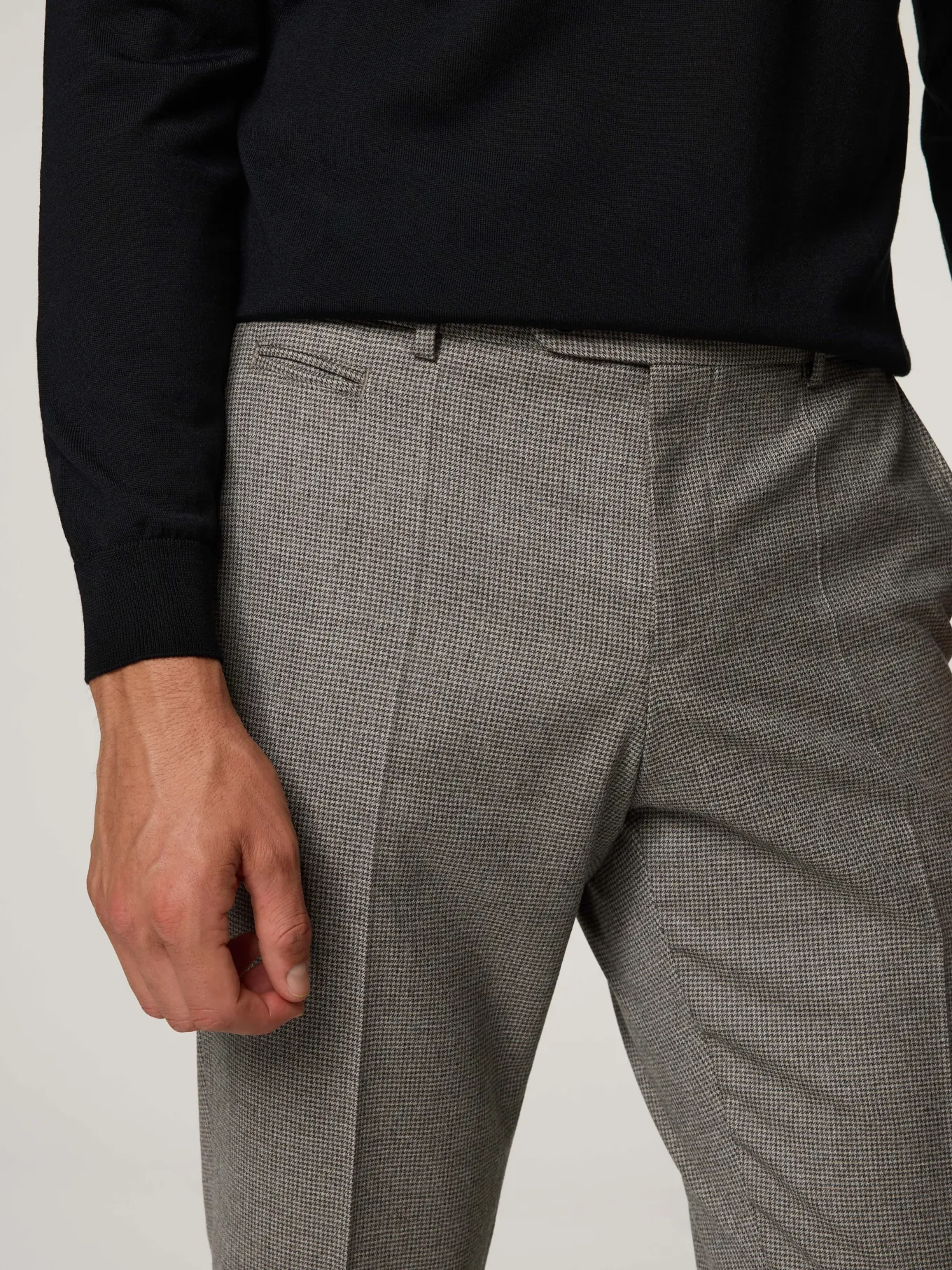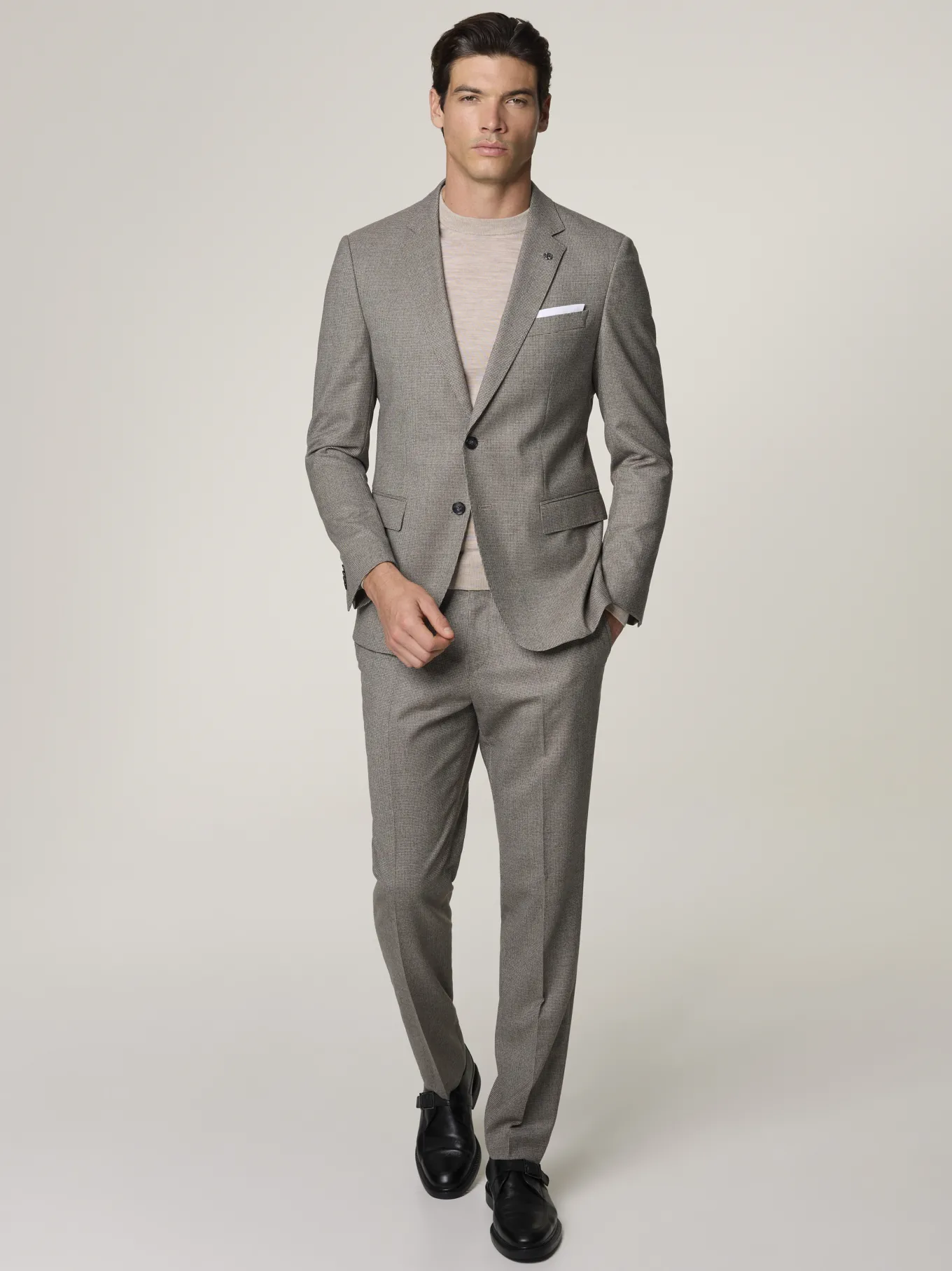 Unser Model misst 187 cm und trägt Grösse 50.
