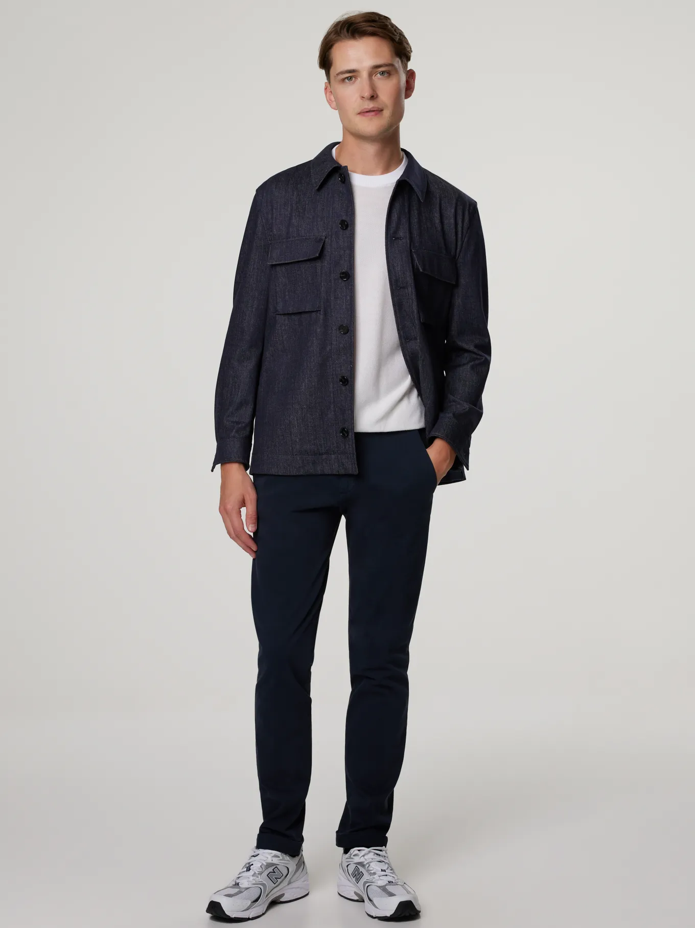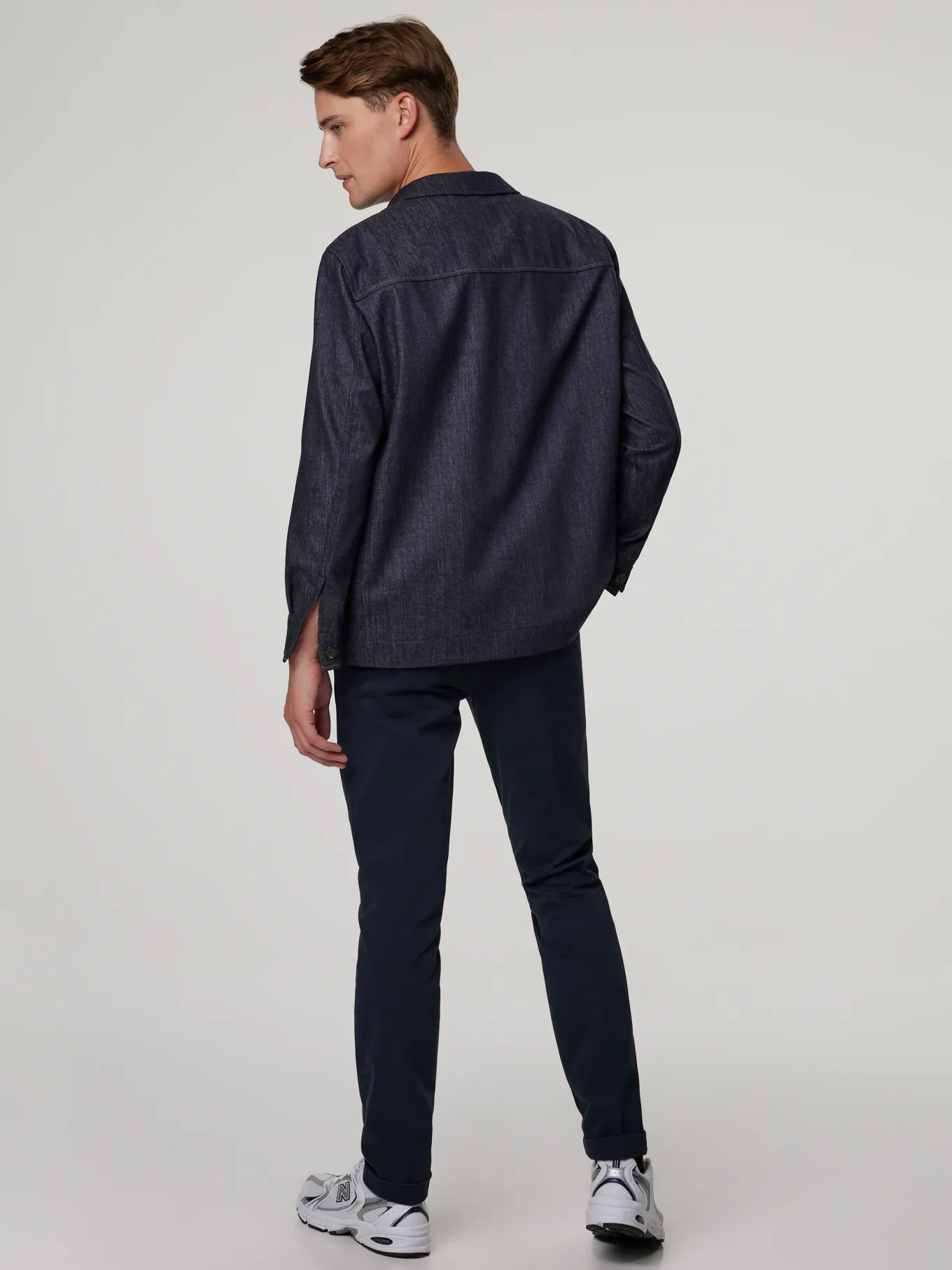 Unser Model misst 187 cm und trägt Grösse 48.