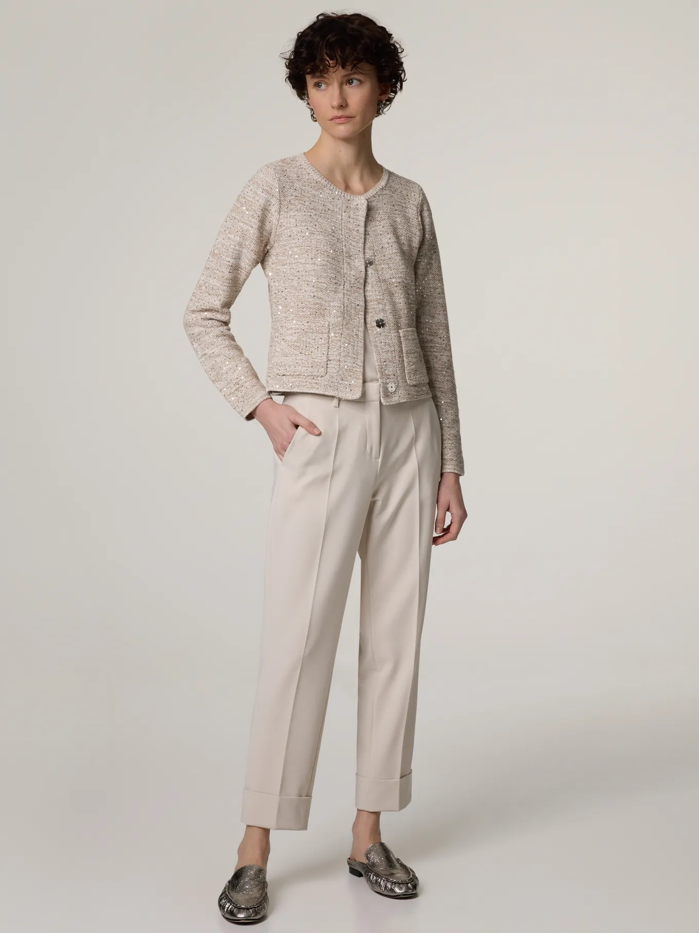 Unser Model misst 176 cm und trägt Grösse 36.