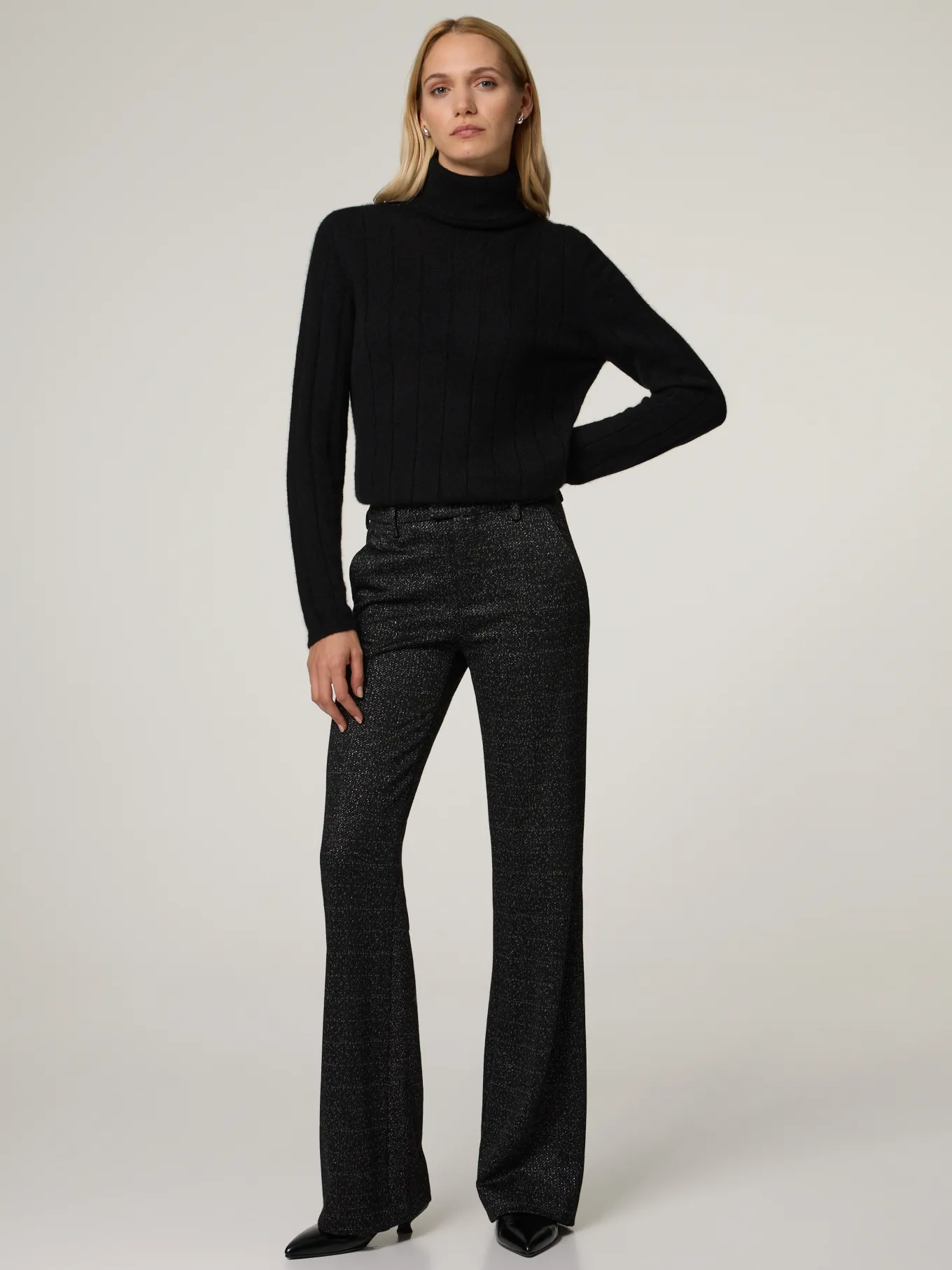 Unser Model misst 177 cm und trägt Grösse 36/34.