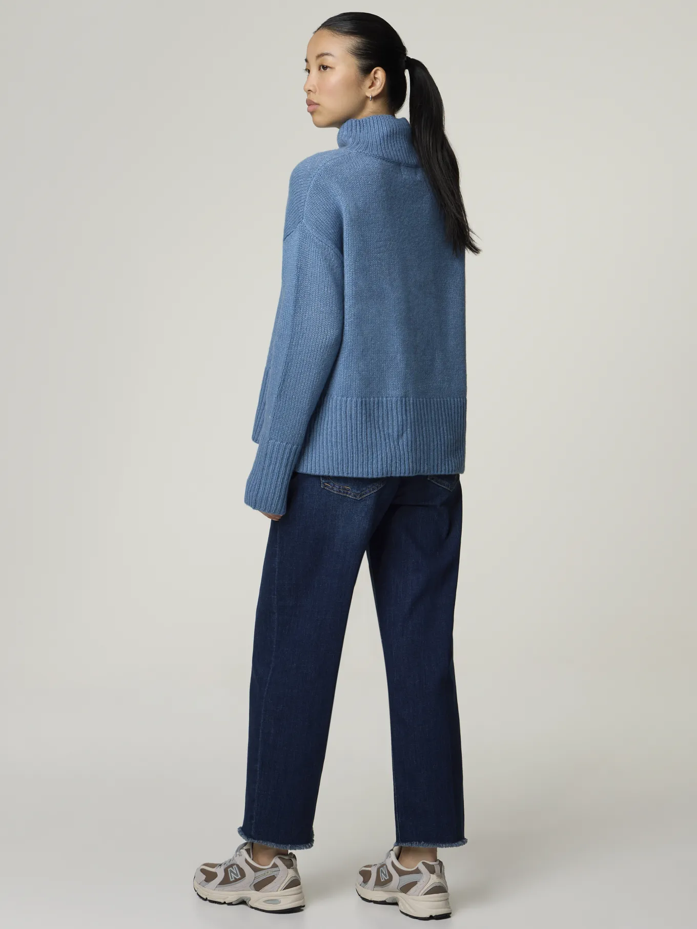 Unser Model misst 174 cm und trägt Grösse 36.