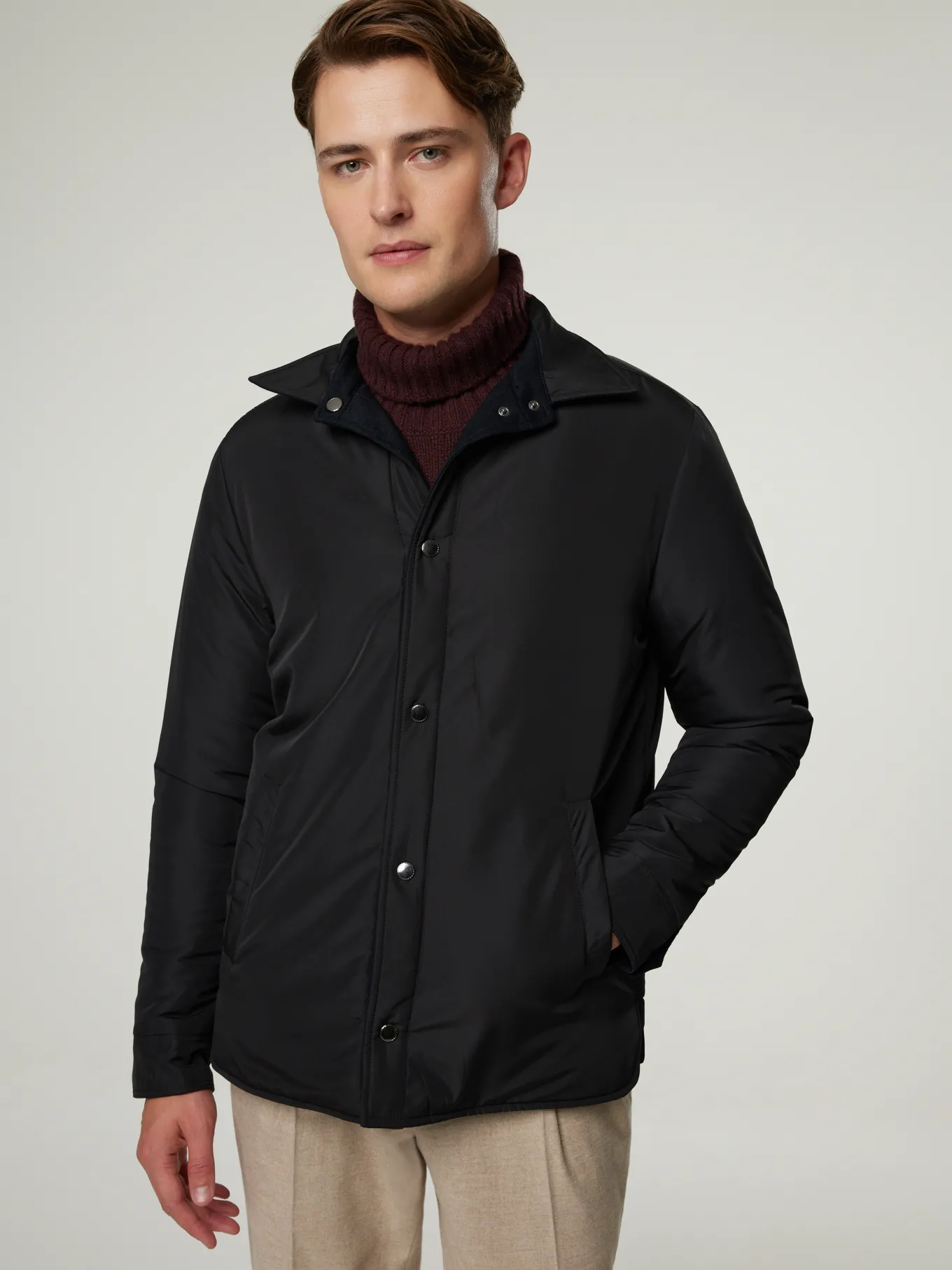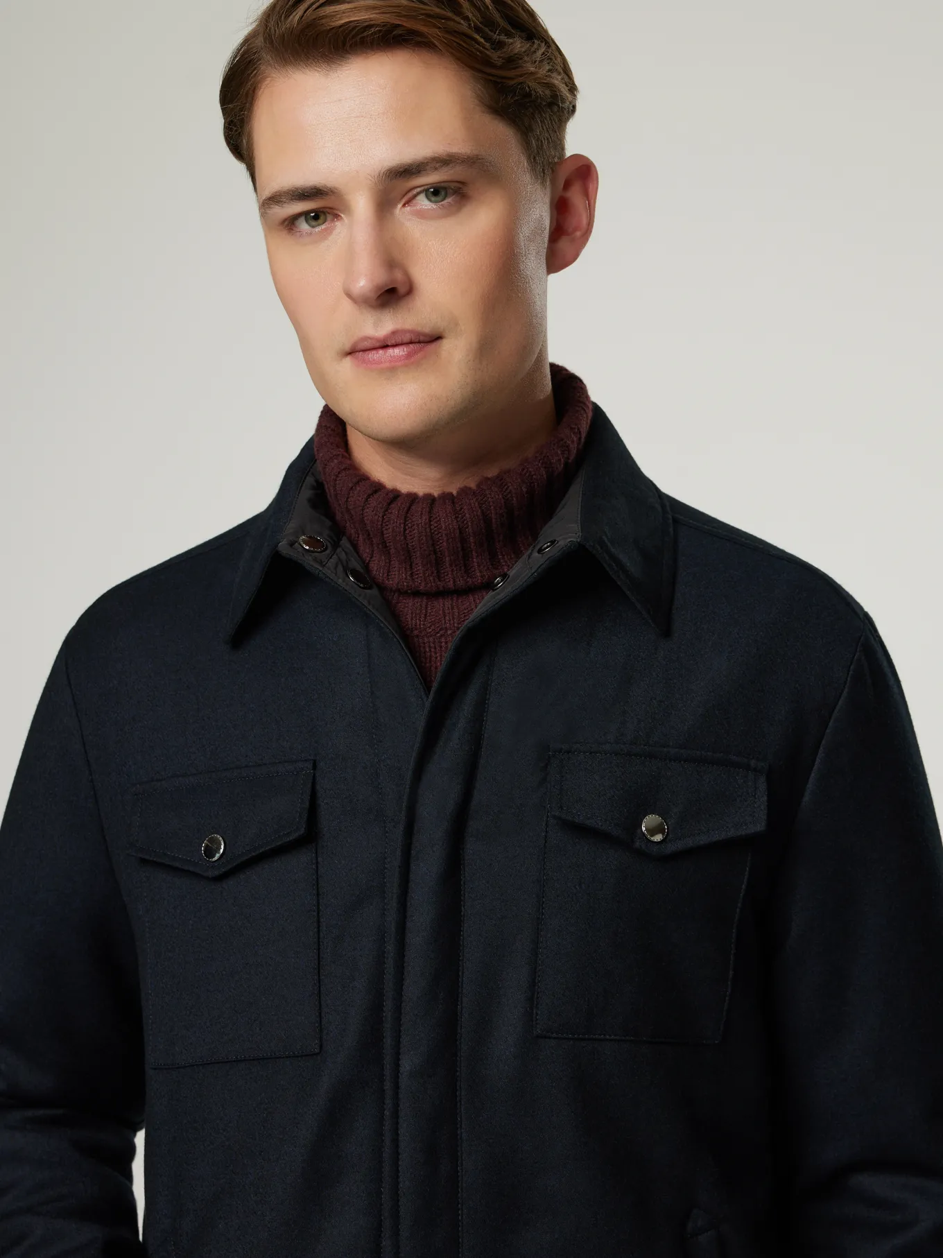 Unser Model misst 187 cm und trägt Grösse 50.