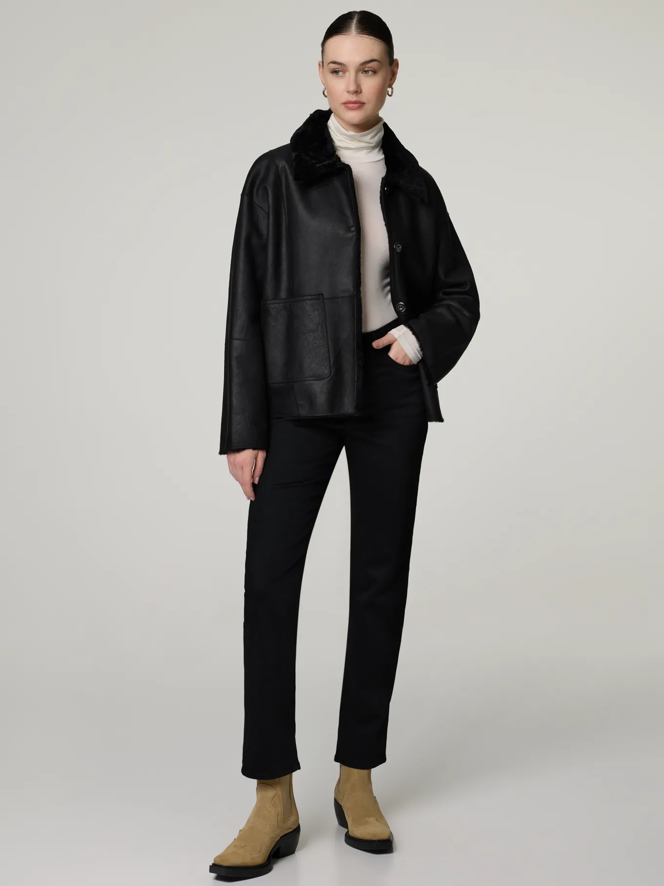 Unser Model misst 177 cm und trägt Grösse 36.
