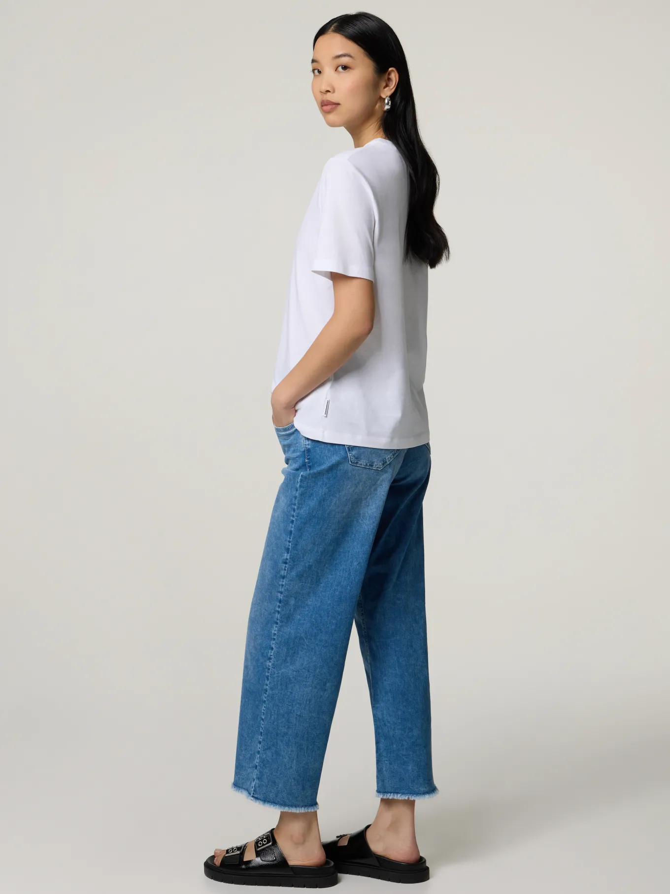 Unser Model misst 174 cm und trägt Grösse 36.
