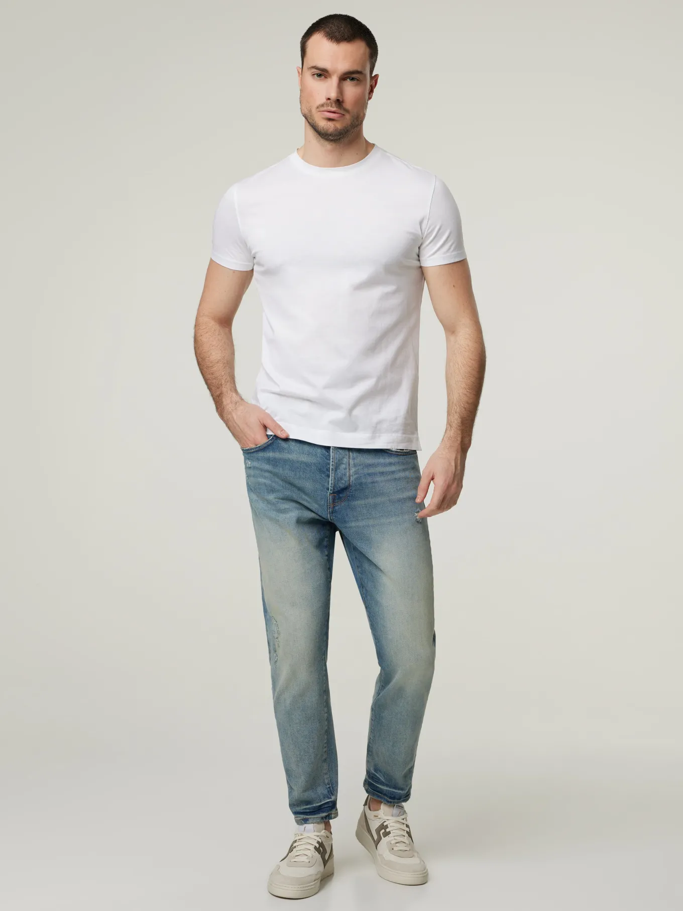 Unser Model misst 187 cm und trägt Grösse 32/32.
