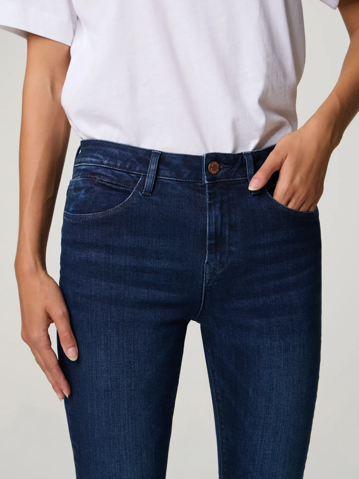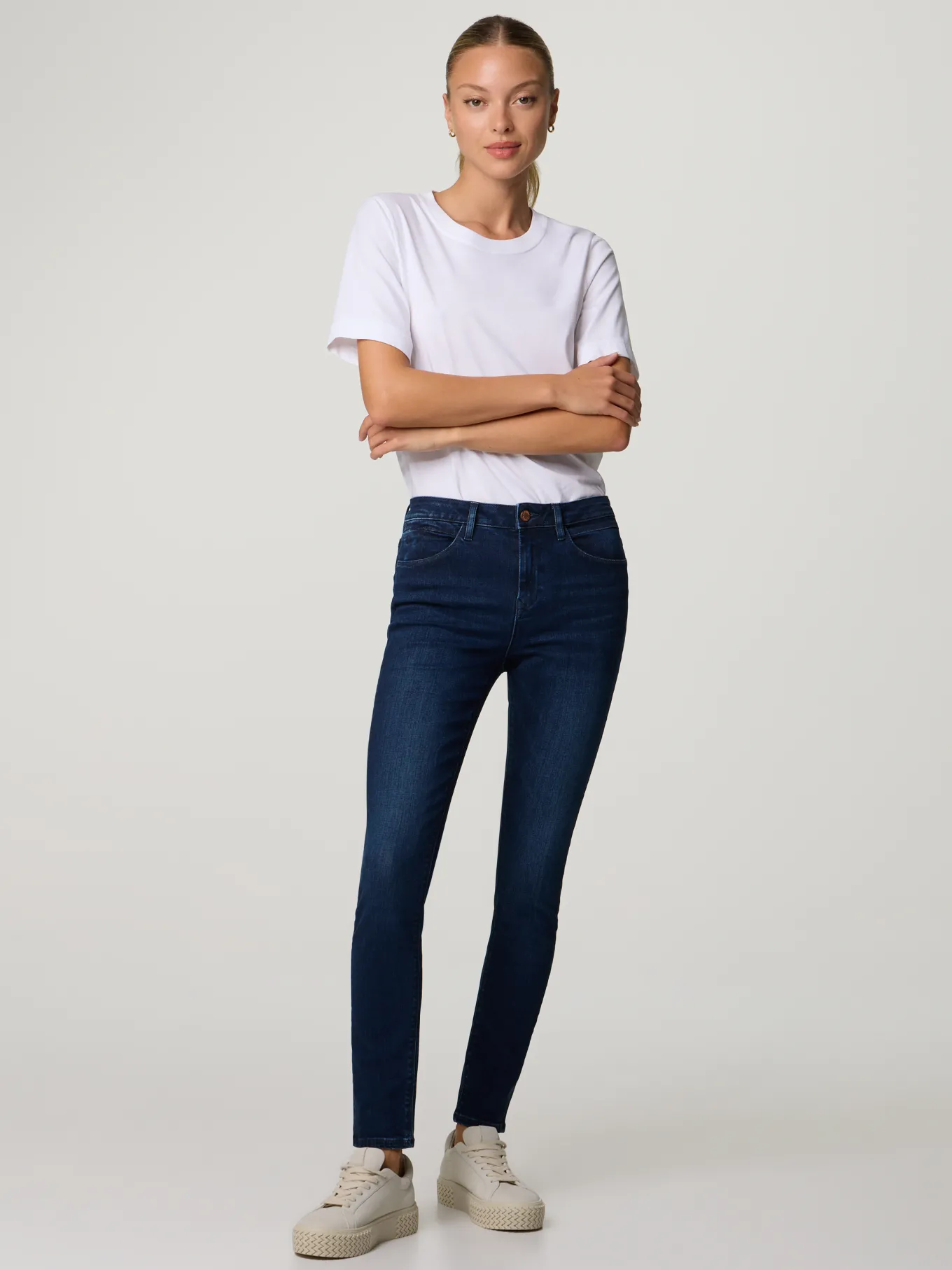 Unser Model misst 176 cm und trägt Grösse 27/30.