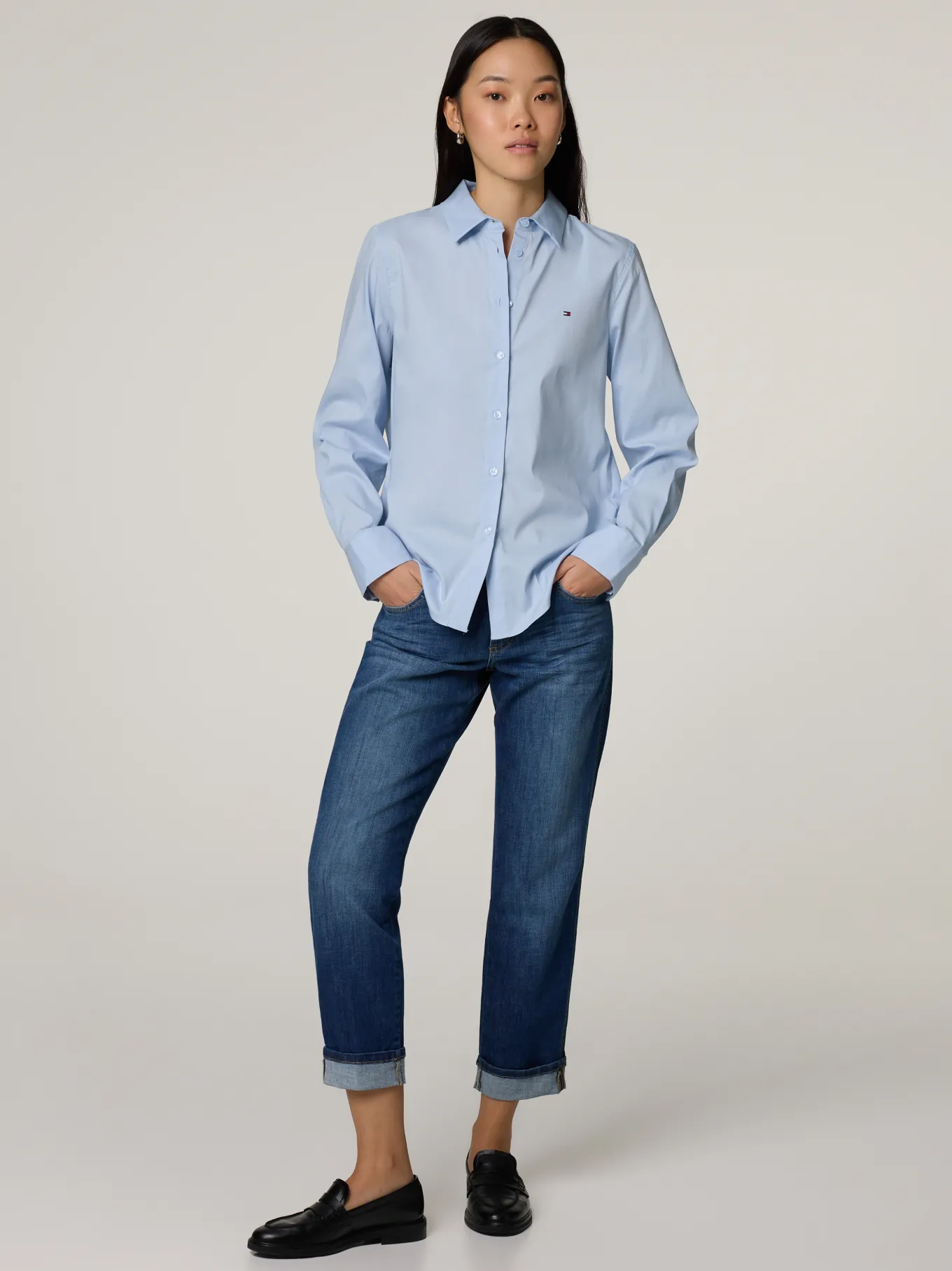 Unser Model misst 177 cm und trägt Grösse 36.