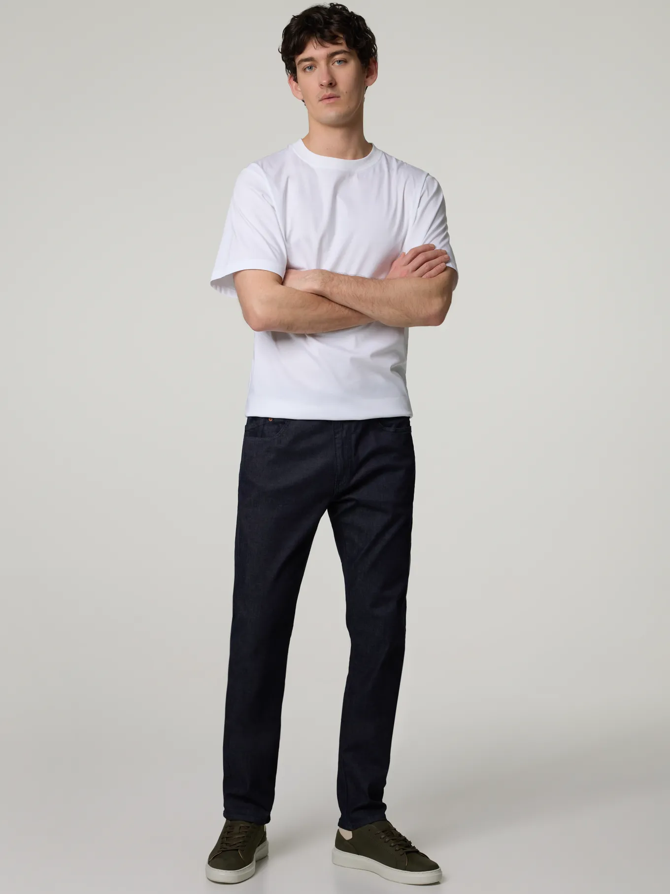 Unser Model misst 190 cm und trägt Grösse 32/32.