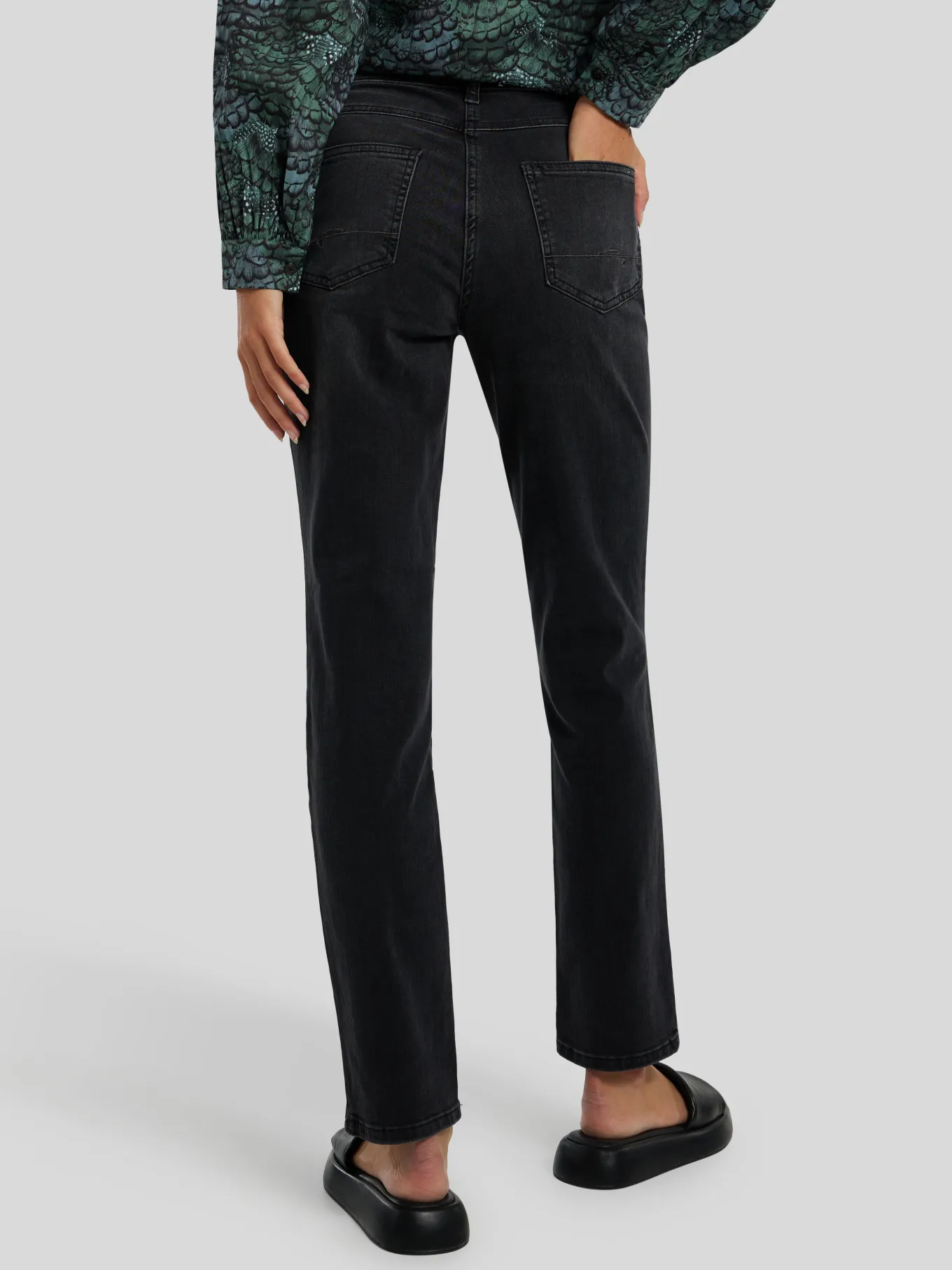 Unser Model misst 176 cm und trägt Grösse 36/30.
