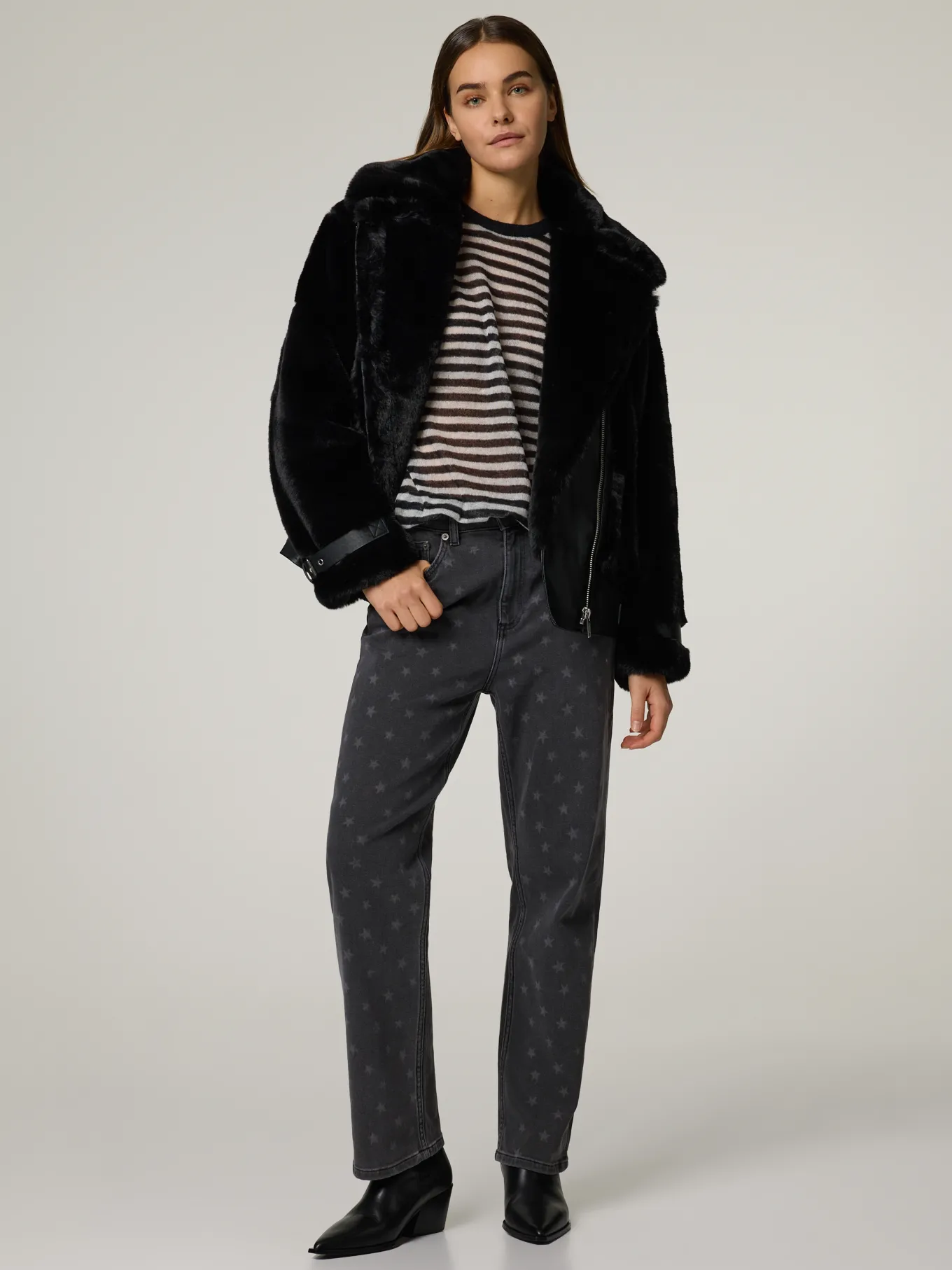 Unser Model misst 176 cm und trägt Grösse 36.