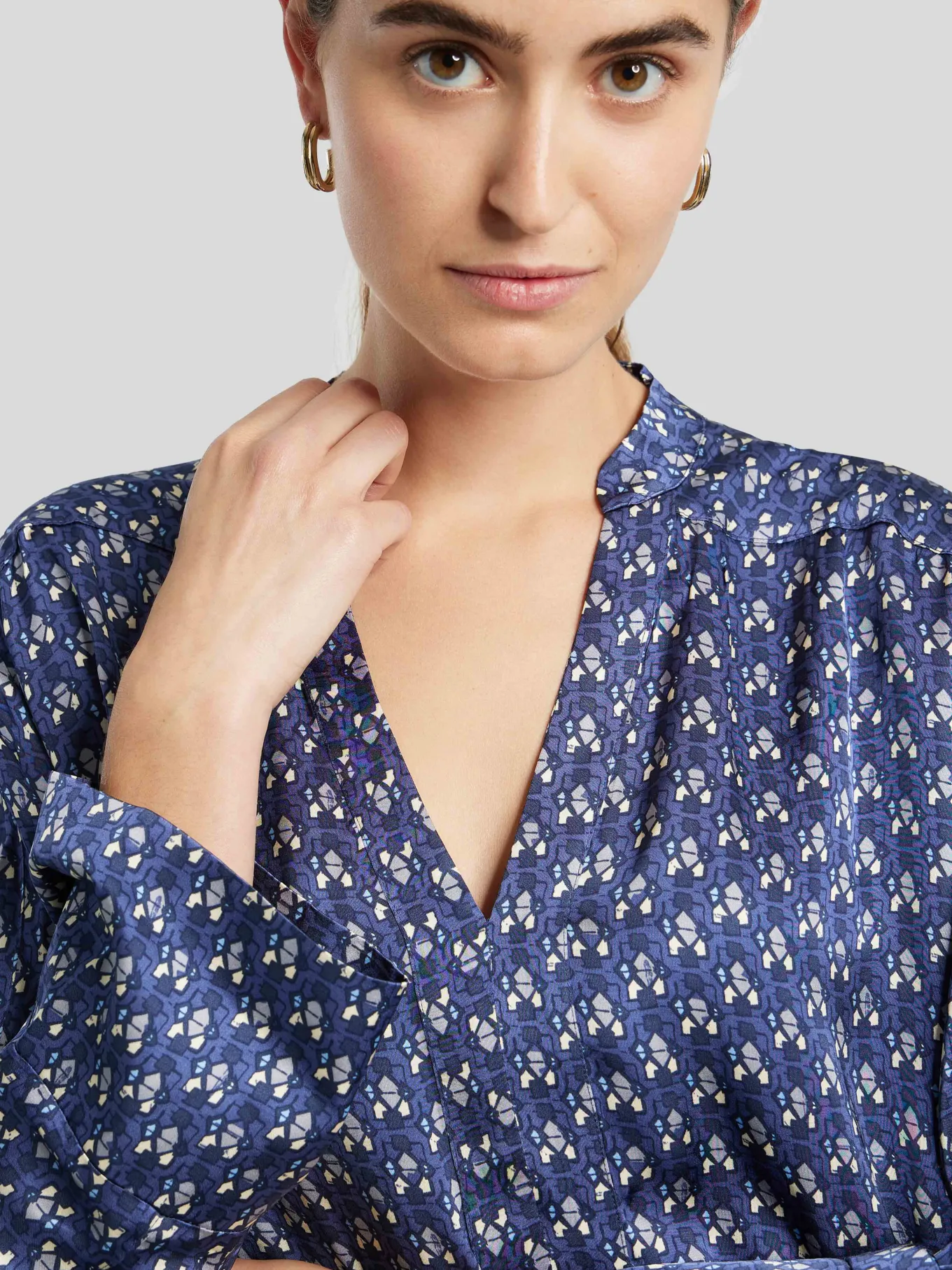 Unser Model misst 176 cm und trägt Grösse 1.