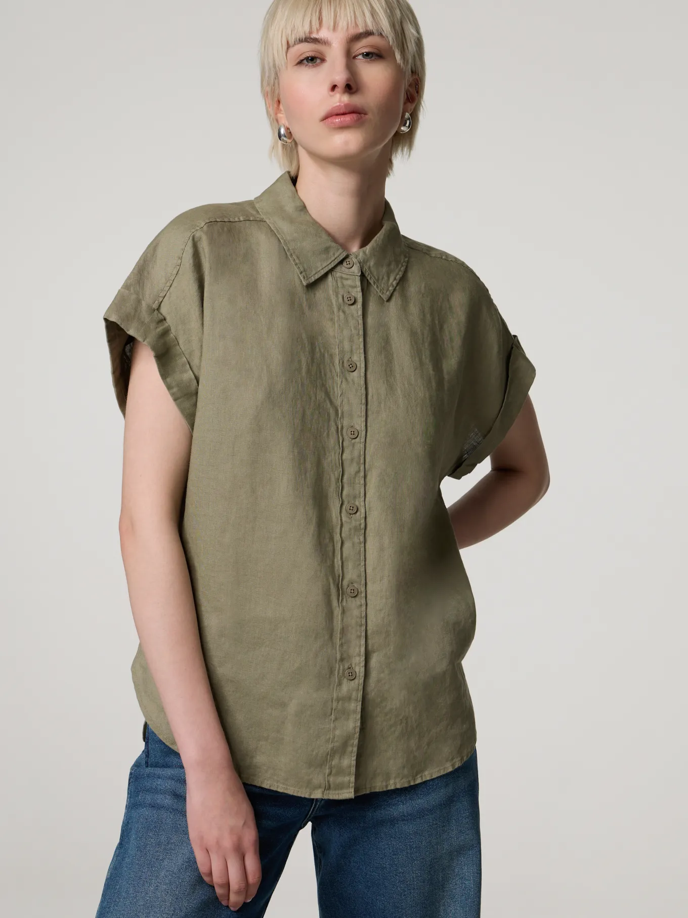 Kurzarmbluse aus Leinen