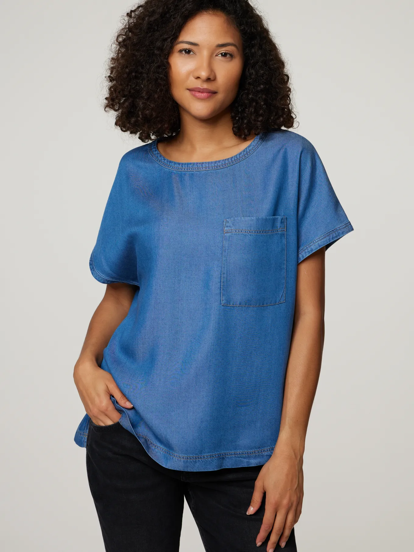 Kurzarmbluse im Denim-Look