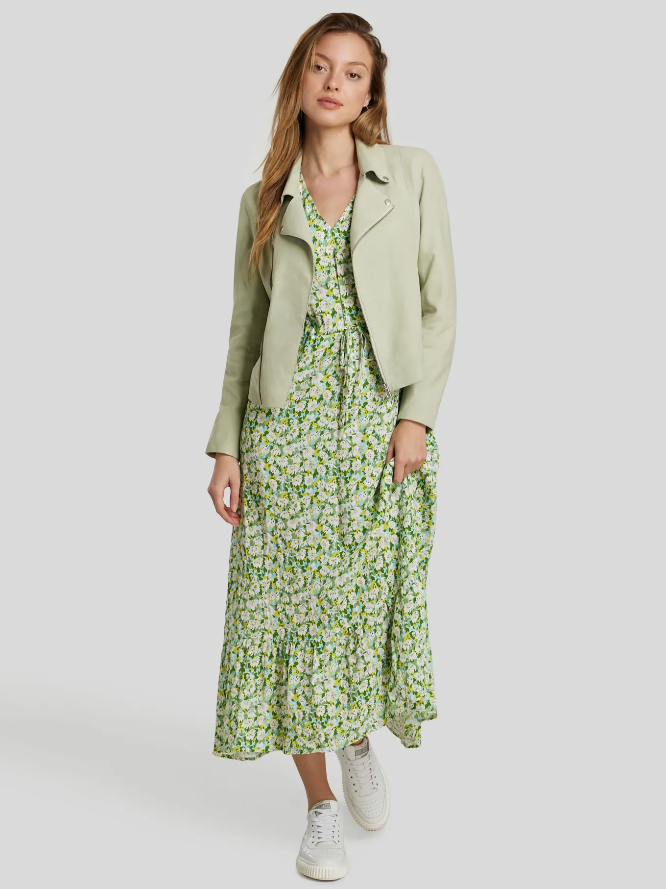 Unser Model misst 176 cm und trägt Grösse 36.