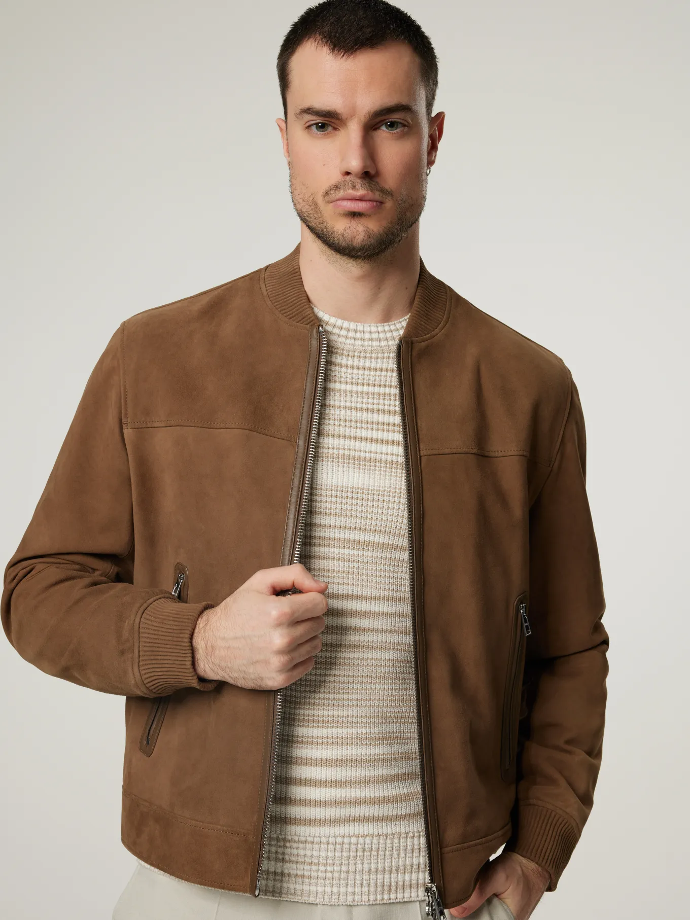 Unser Model misst 187 cm und trägt Grösse 50.