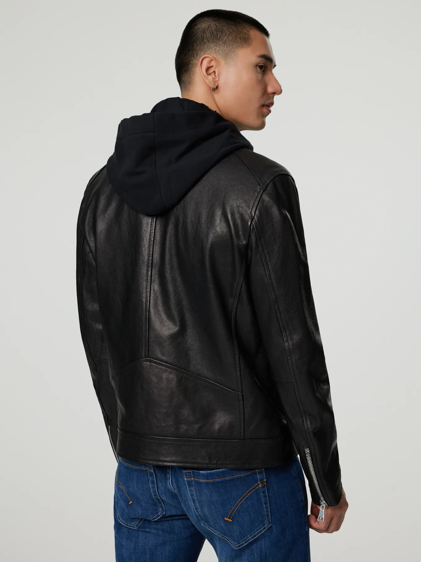 Unser Model misst 187 cm und trägt Grösse 50.
