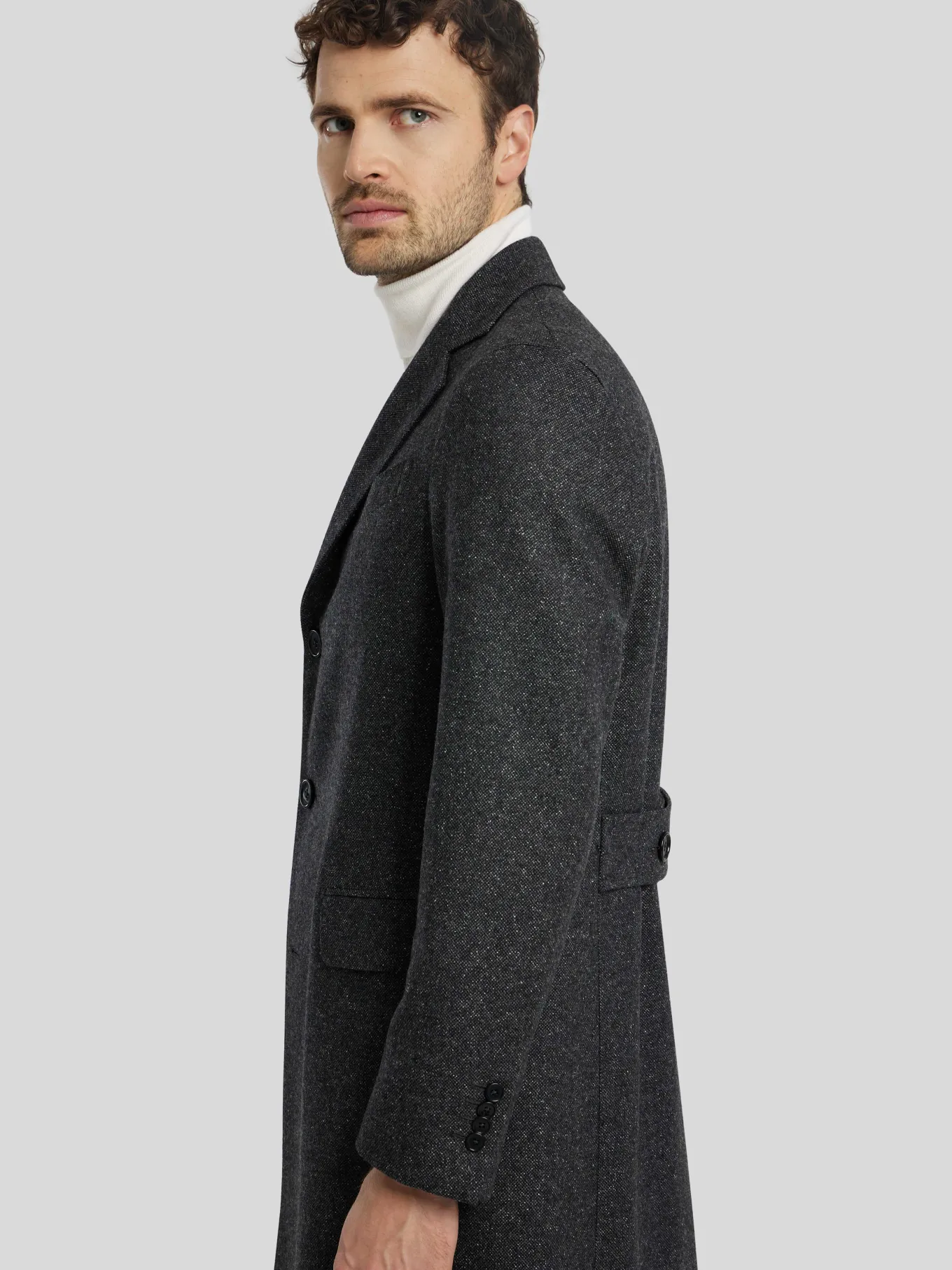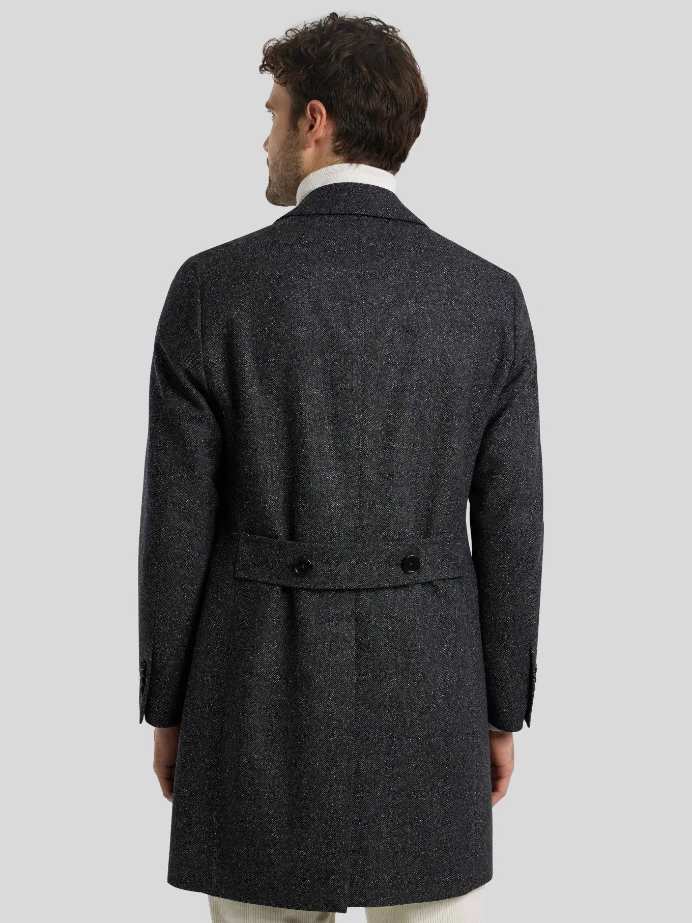 Unser Model misst 187 cm und trägt Grösse 48.