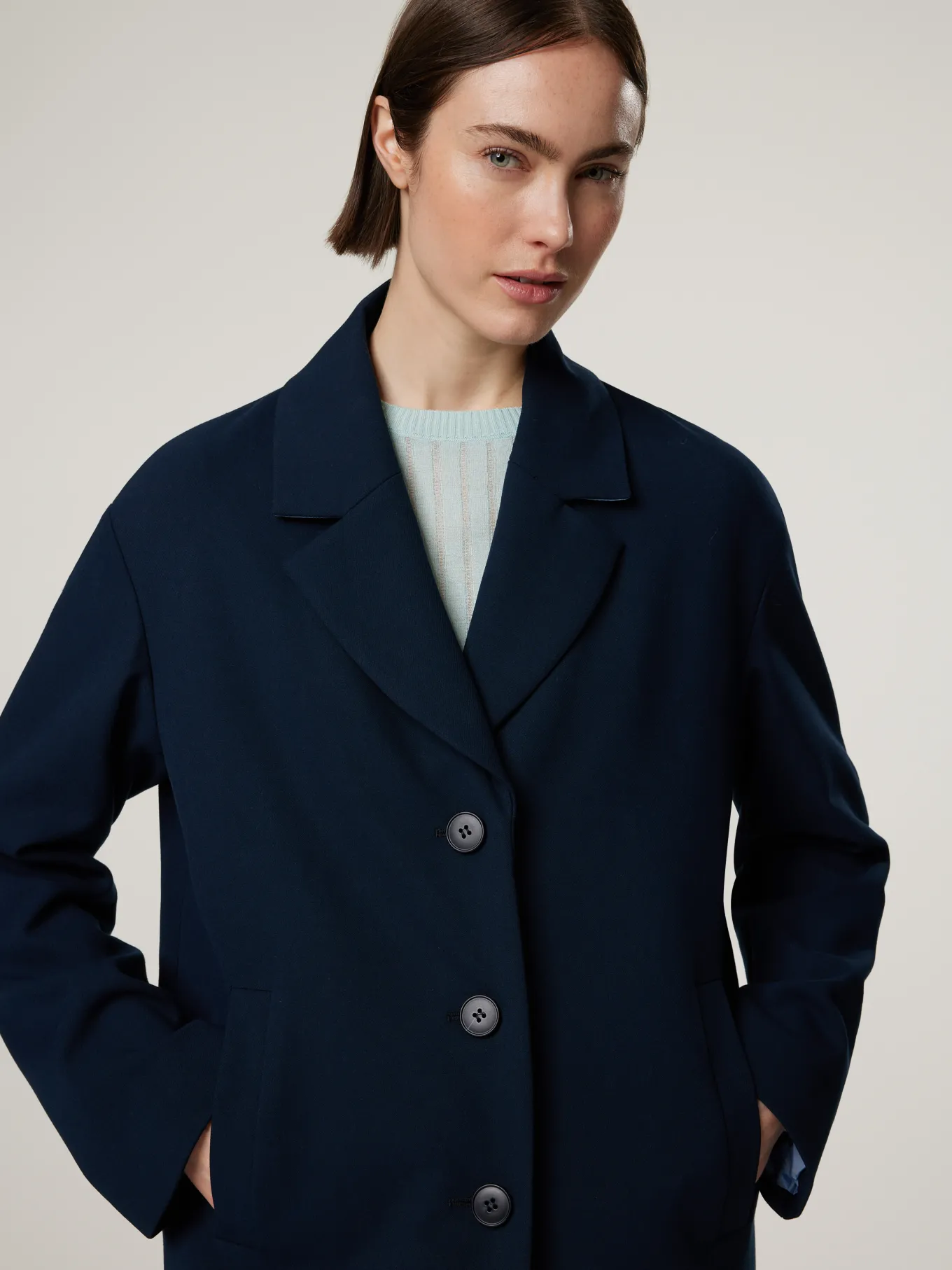 Unser Model misst 176 cm und trägt Grösse 38.