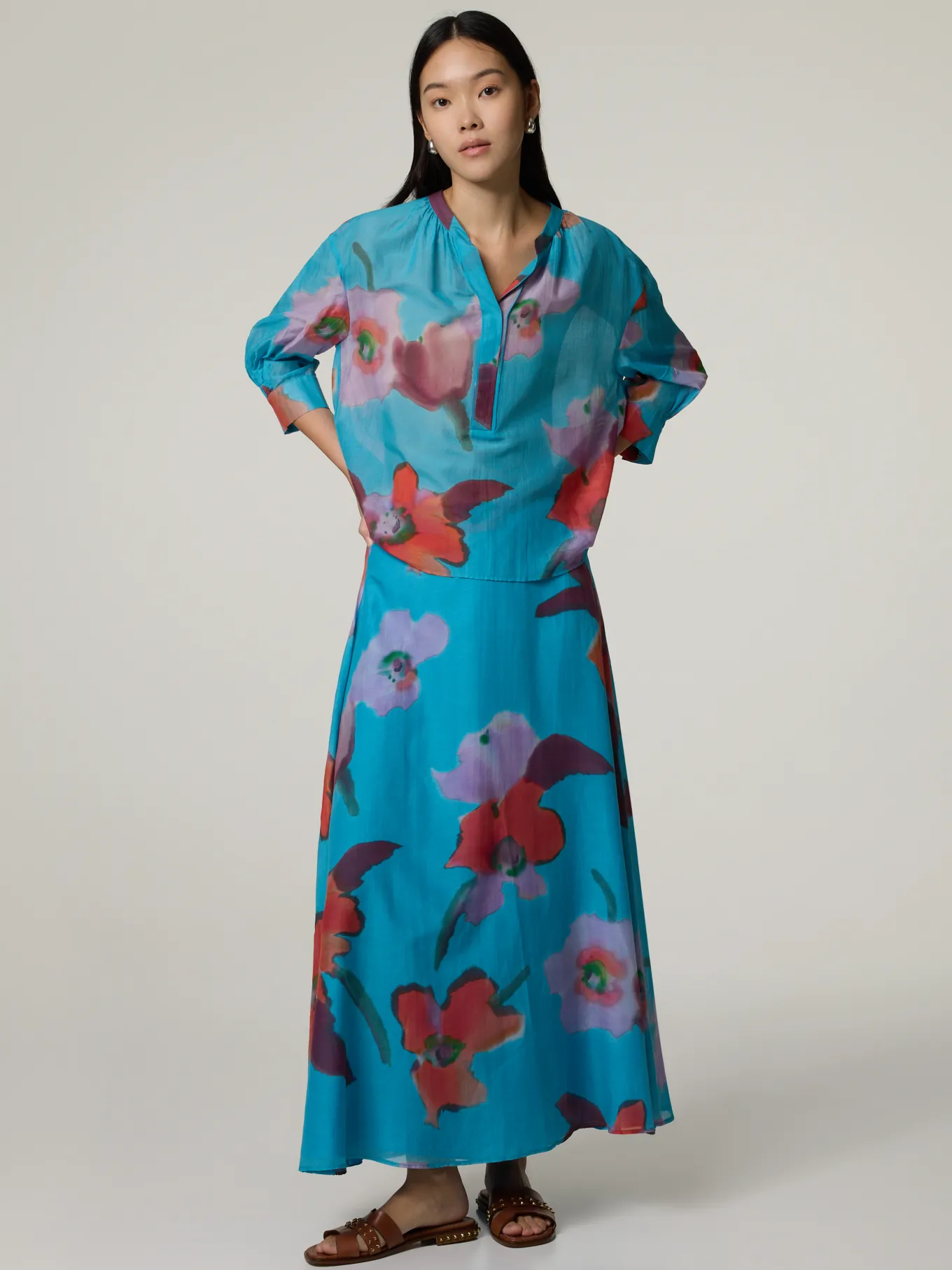 Unser Model misst 176 cm und trägt Grösse 36.