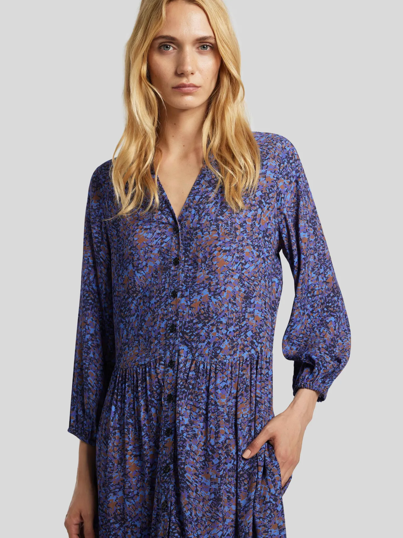 Unser Model misst 176 cm und trägt Grösse 36.