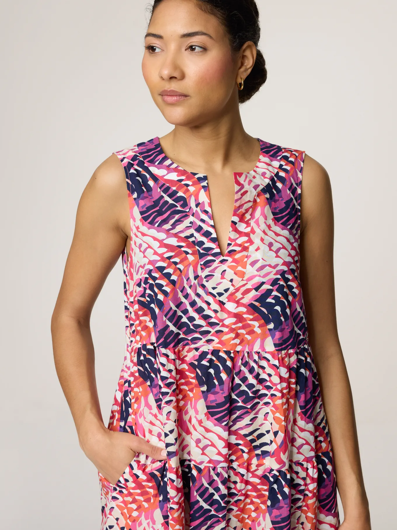 Unser Model misst 176 cm und trägt Grösse 36.