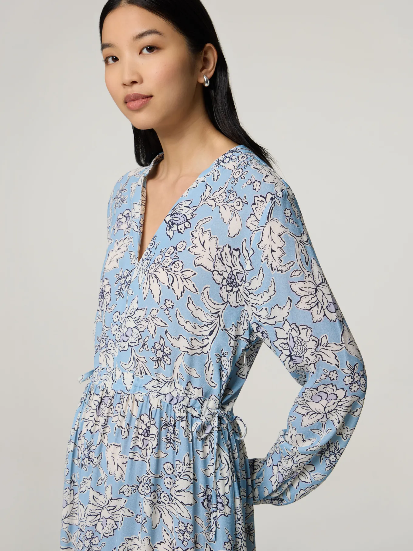 Unser Model misst 174 cm und trägt Grösse 36.