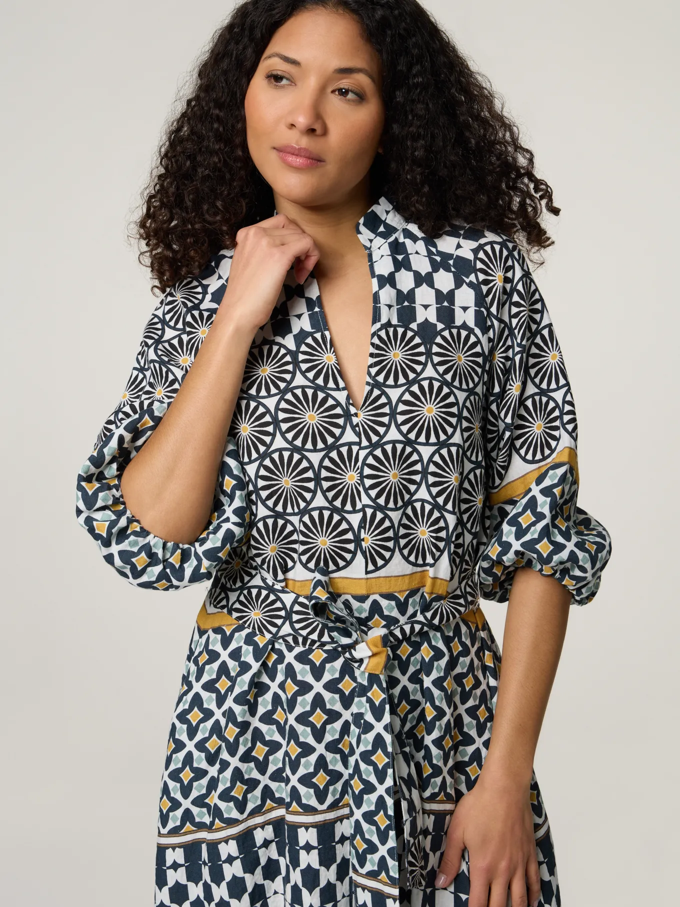 Unser Model misst 178 cm und trägt Grösse 36.