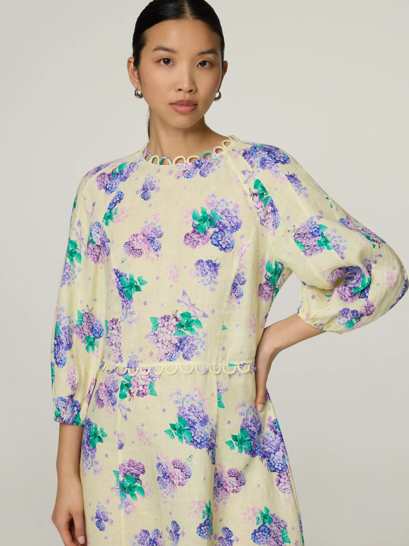 Unser Model misst 174 cm und trägt Grösse 36.