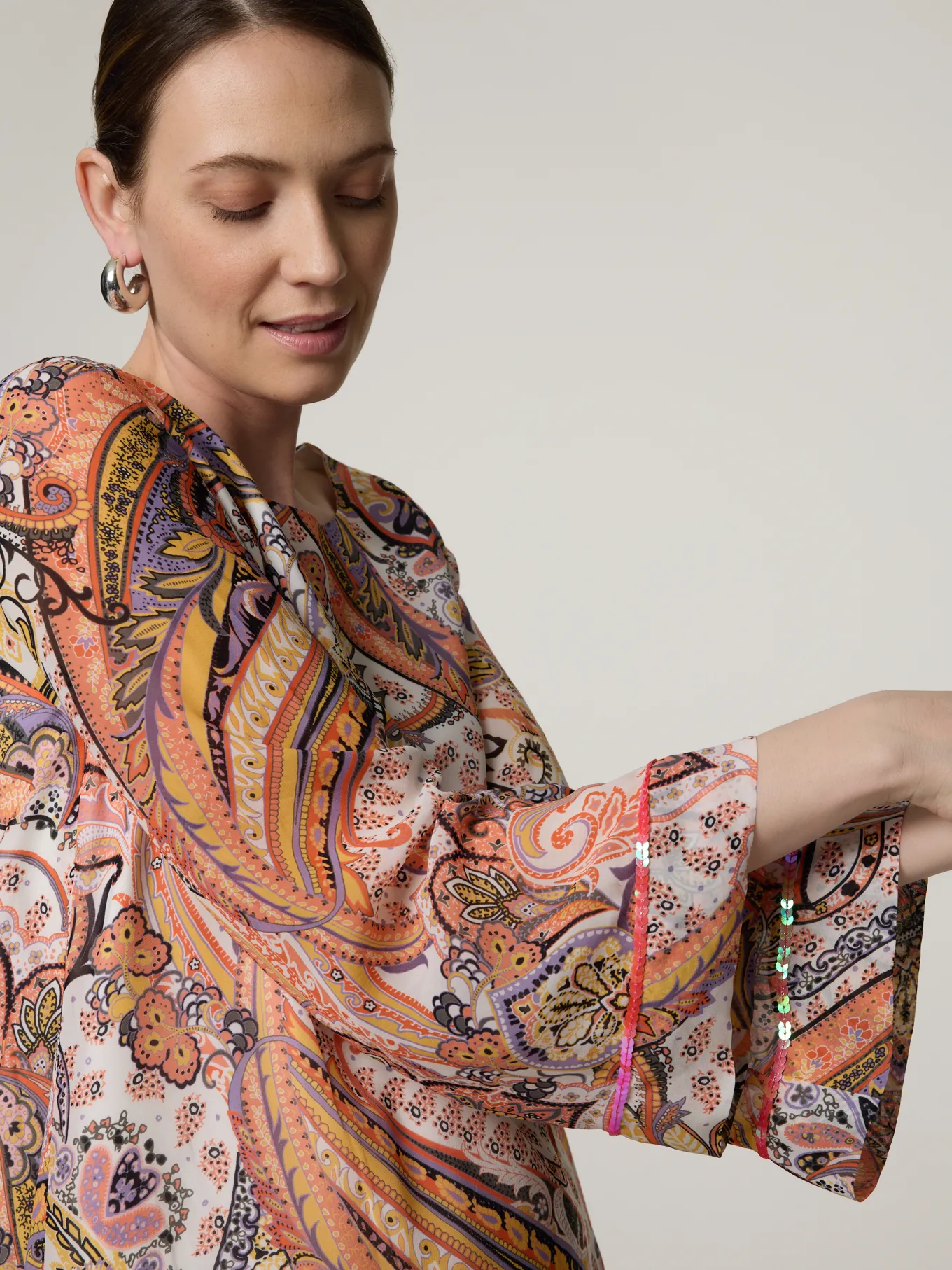 Unser Model misst 178 cm und trägt Grösse 36.
