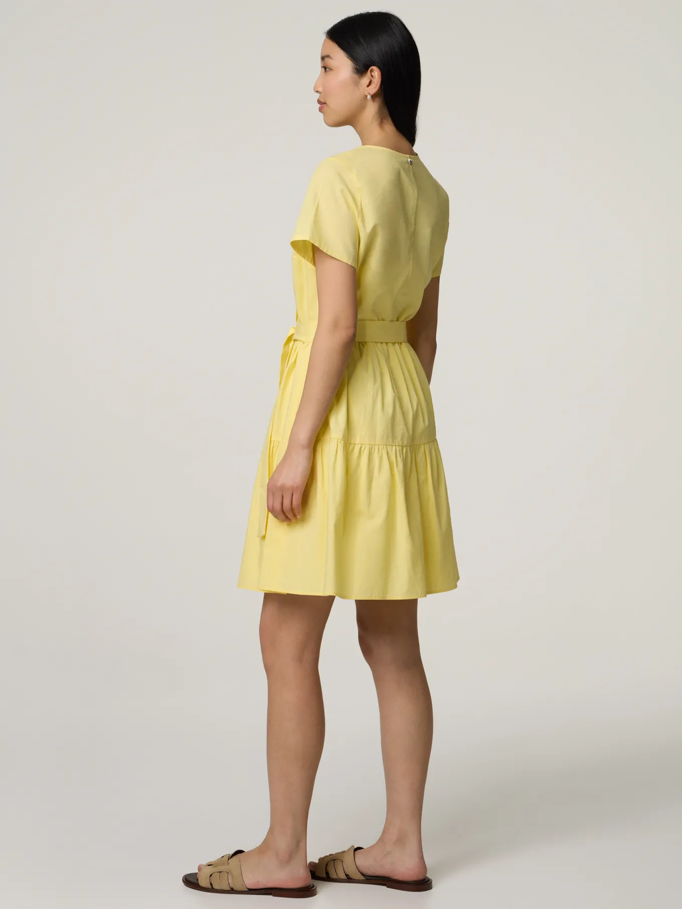 Unser Model misst 174 cm und trägt Grösse 36.