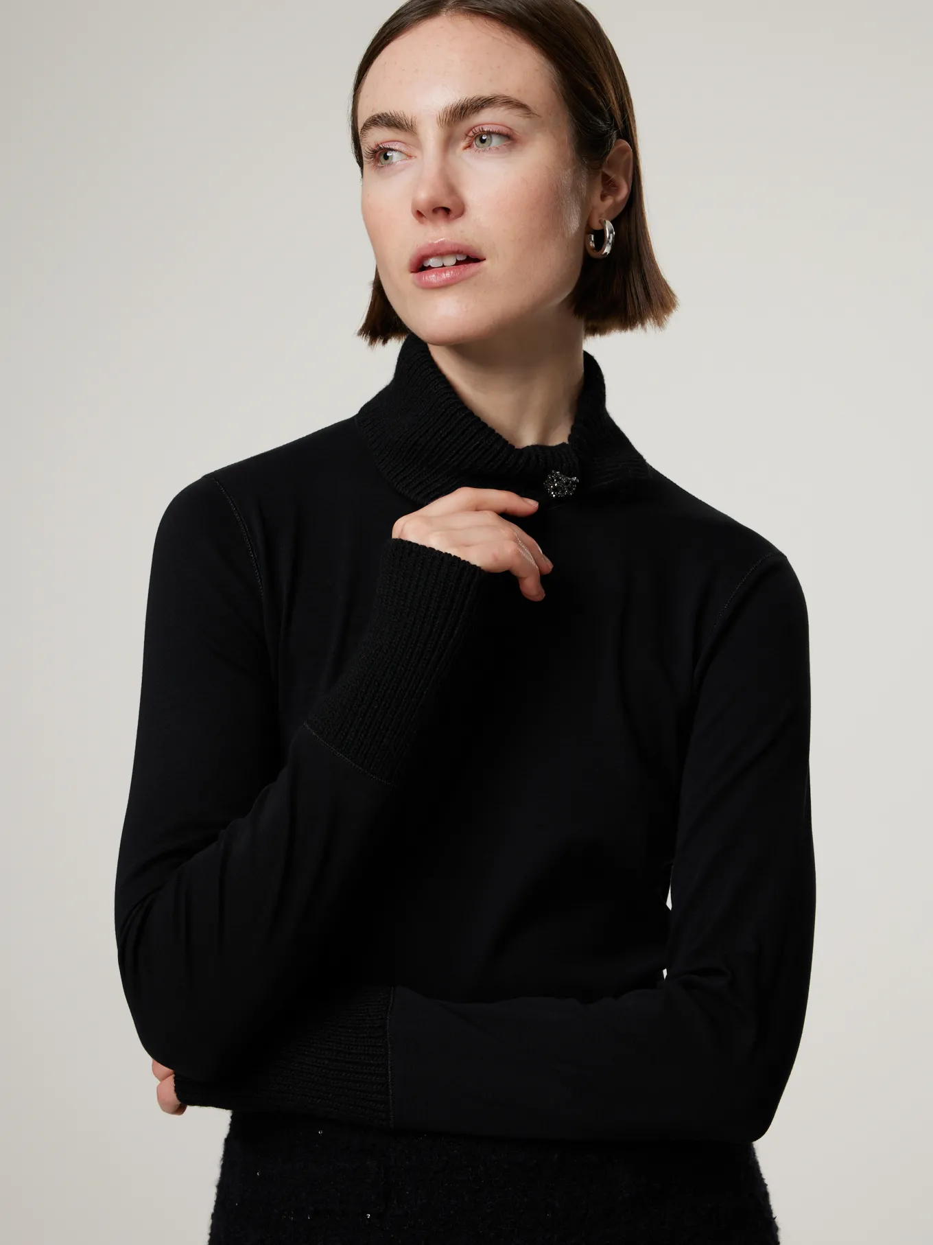 Unser Model misst 176 cm und trägt Grösse 36.